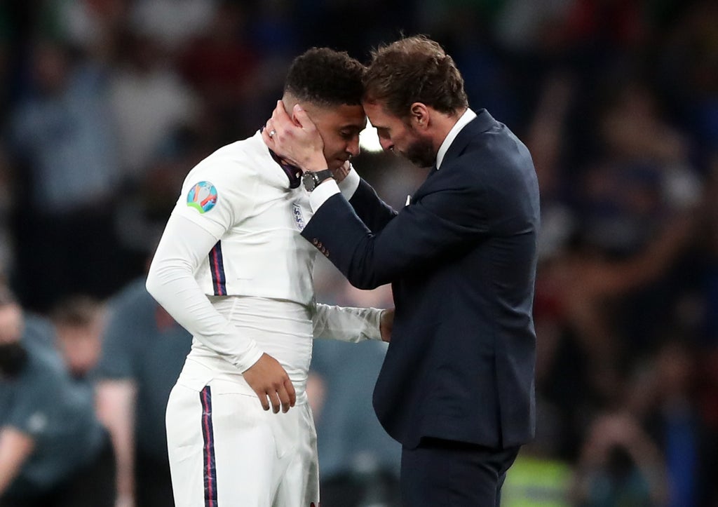 Gareth Southgate knows all about costly penalty misses and the England manager says he is there to support Marcus Rashford Jadon Sancho and Bukayo Saka as they “work through” things.