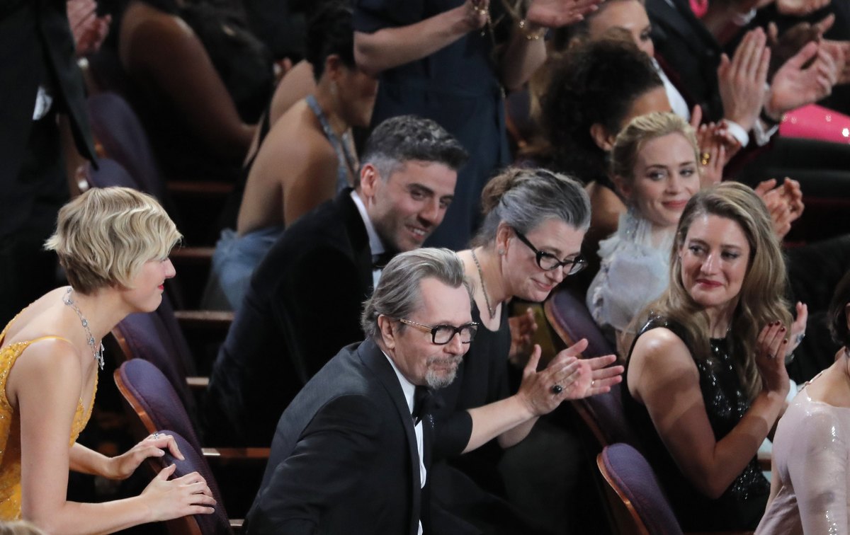 "I would just like to salute Winston Churchill, who has been marvelous company on what can be described as an incredible journey," Oldman said while accepting his award.
