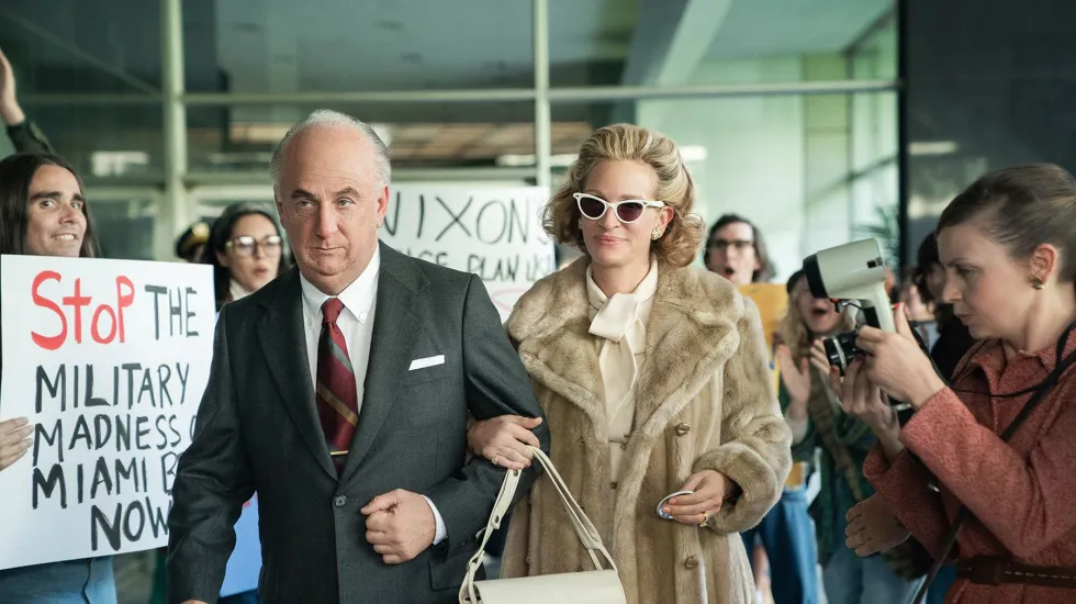 When it comes to star power, nobody outshines Oscar winners Roberts and Penn, but Roberts slips back into her Southern accent and loses herself in the fashions and hairstyles of the time while delivering a devastatingly effective performance as the booze-soaked, ferociously independent and tragic Martha Mitchell. Penn disappears under the prosthetics and exudes controlled rage as Martha’s husband John, who was Nixon’s campaign chairman and then attorney general—and then one of the many corrupt soldiers in the Nixon White House who fell on their swords (or were pushed onto their swords) in the Watergate scandal.