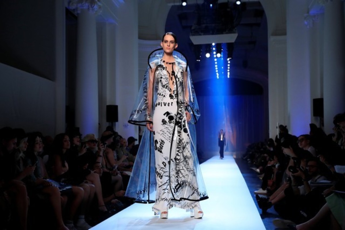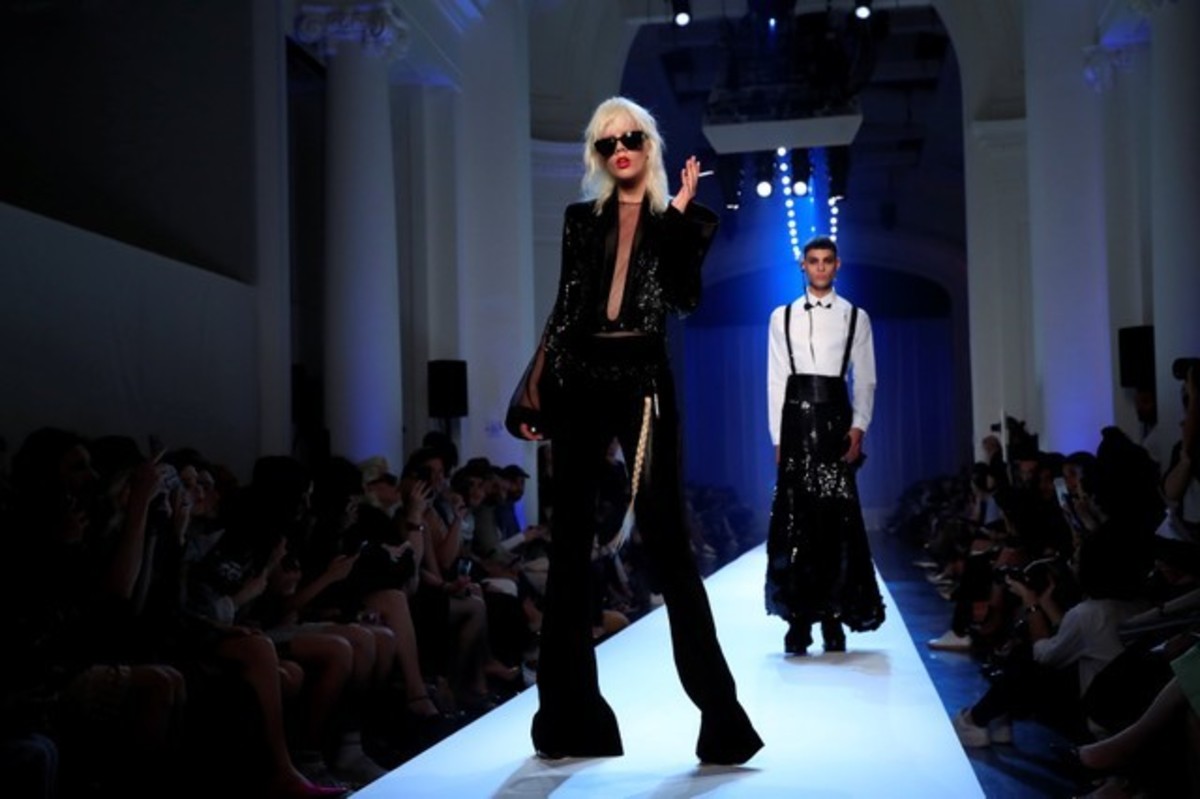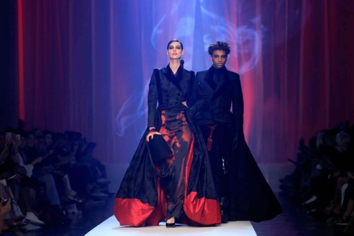 Reinterpretations of "Le Smoking" - or tuxedos for women popularized by late French couturier Yves Saint Laurent in the 1960s - dominated the Haute Couture collection, with black and white combinations of jackets and ruffled dresses for instance.