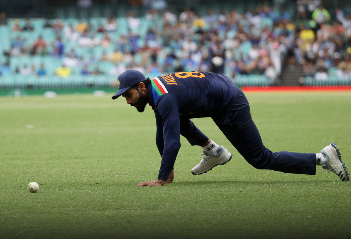 India's spin-bowling all-rounder Ravindra Jadeja top-edged a Mitchell Starc bouncer into his helmet in the last over of the innings but was replaced by leg-spinner Yuzvendra Chahal only during the innings break.