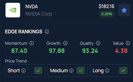 Benzinga's Edge Stock Rankings indicate that NVDA continues to trend upward across short, medium and long-term horizons, with additional performance details available here.