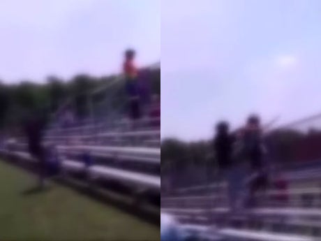 In the broadcaster’s exclusive clip, a student, who has not been identified, approaches Tristen from behind and throws him down onto a set of bleachers while ripping the flag from around his shoulders and throwing it at him.
