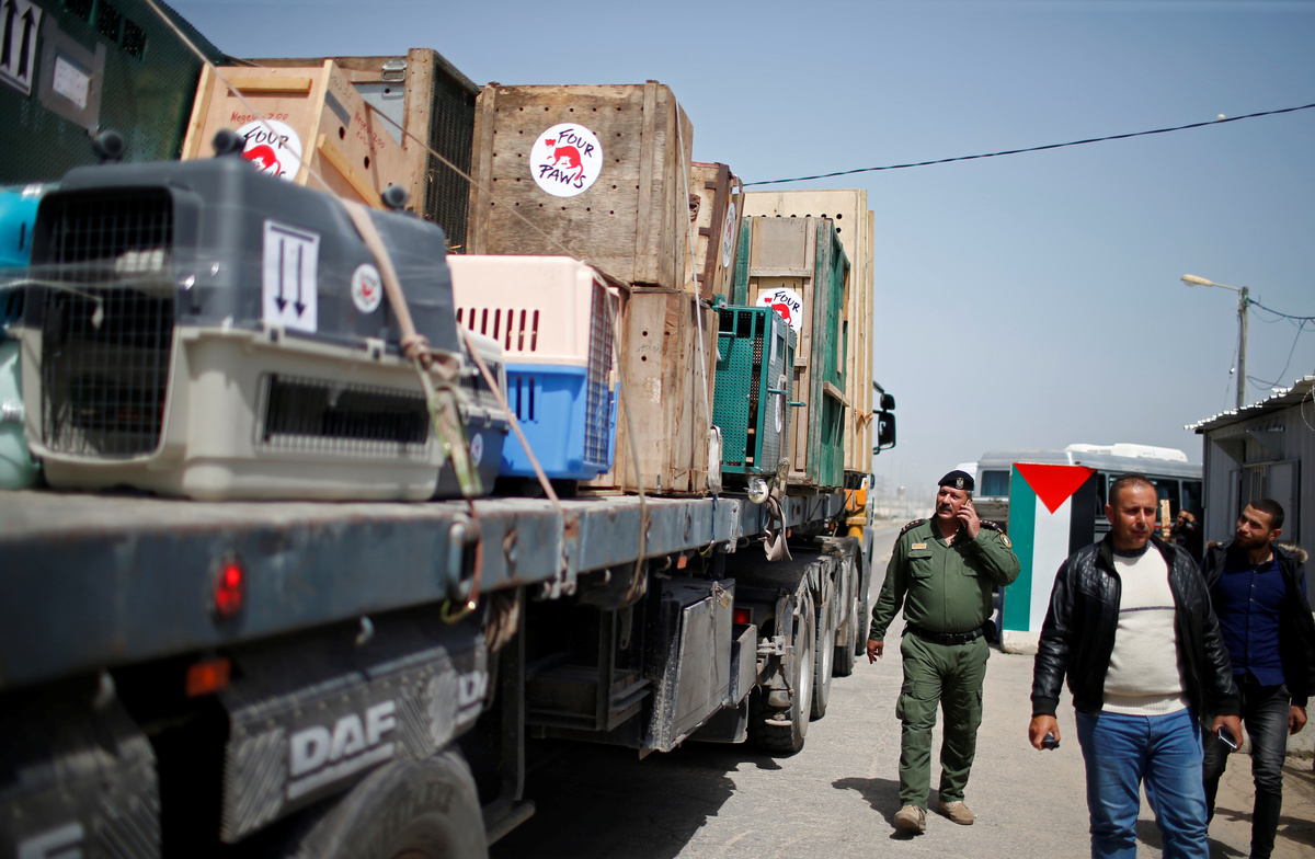 Four Paws veterinarian Amir Khalil, who led the rescue mission, said cages at the Gaza zoo had become too small to house the animals and their offspring. He said the animals would go to a sanctuary in Jordan.