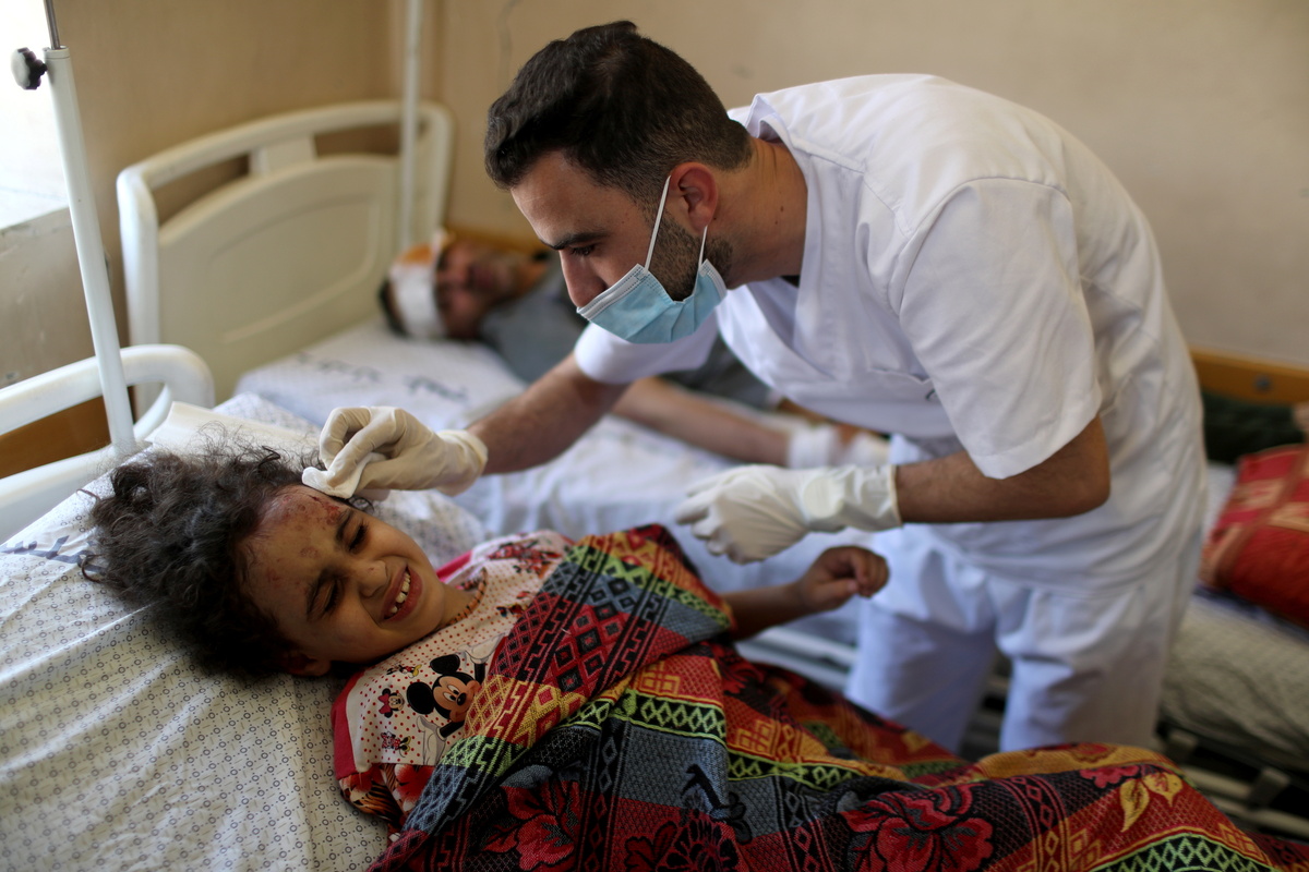 The young girl, trapped for seven hours under the debris, was reunited in Shifa hospital with her father, who was also being treated for his wounds.