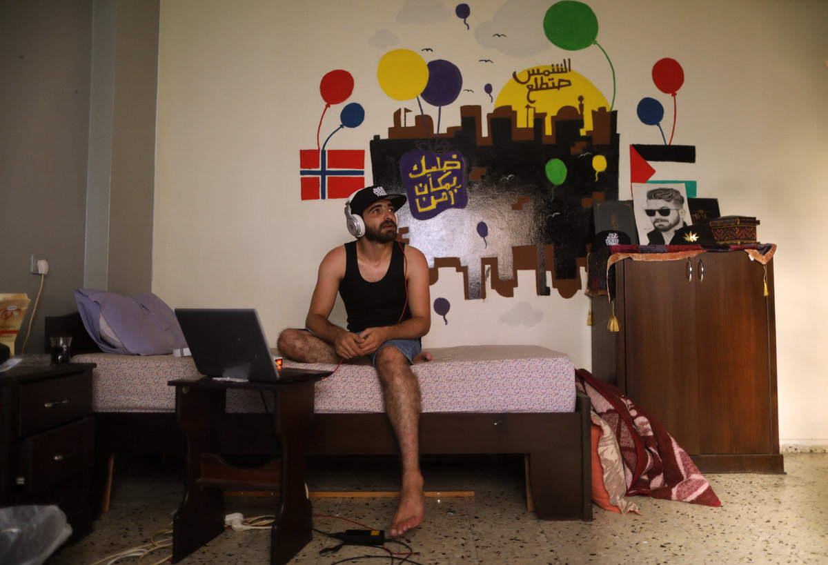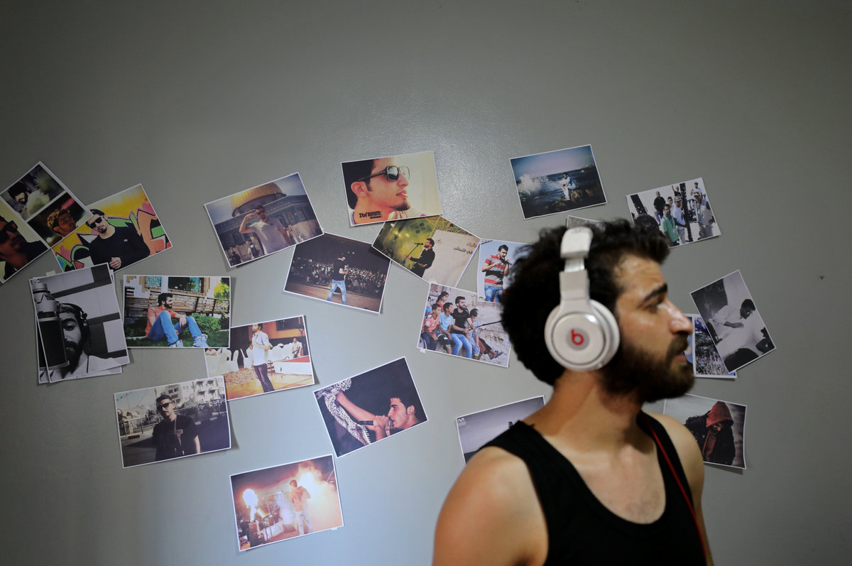 Palestinian rapper Ibrahim Ghunaim (MC Gaza) practices his songs in his room, at home in Gaza City, August 24, 2017. REUTERS/Mohammed Salem