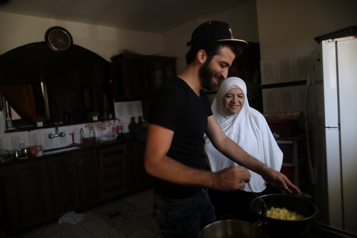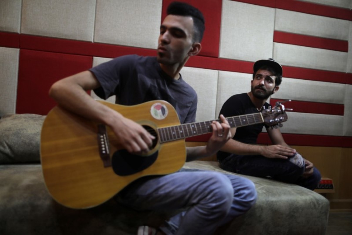 "He sings mostly nationalist songs, about social issues and about our life," Ghunaim's mother, Adeeba, 64, said as he helped her prepare lunch.