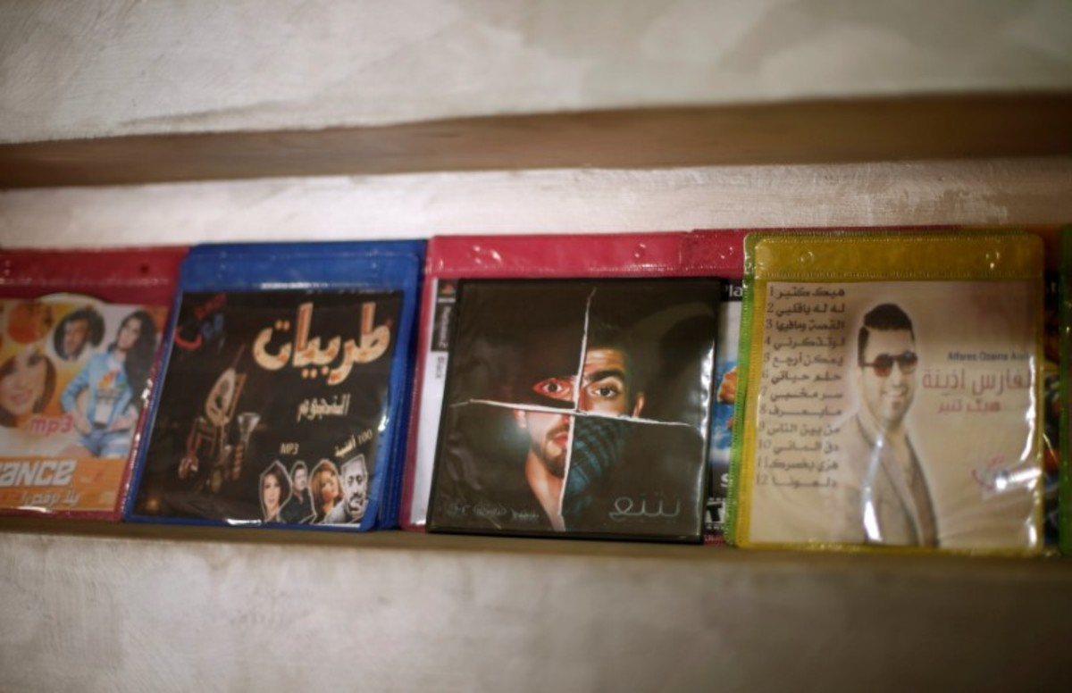 A CD of Palestinian rapper Ibrahim Ghunaim (MC Gaza) is displayed in a shop in Gaza City, August 24, 2017. REUTERS/Mohammed Salem