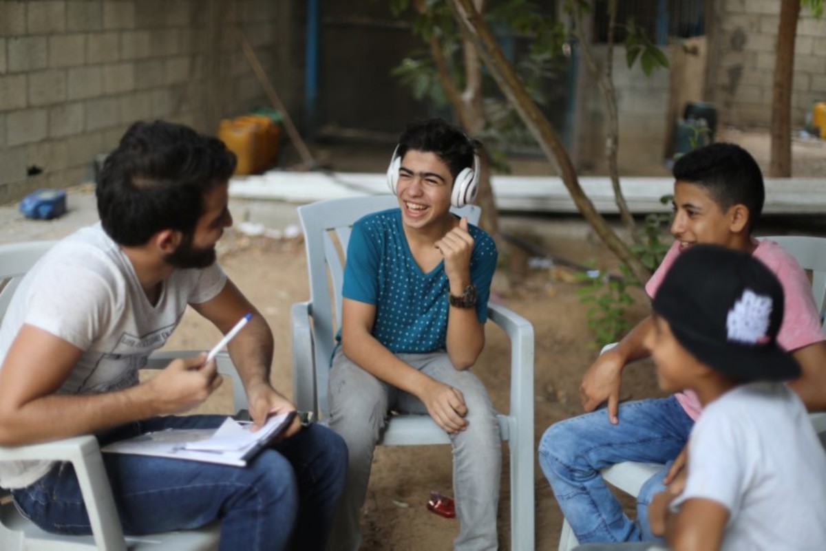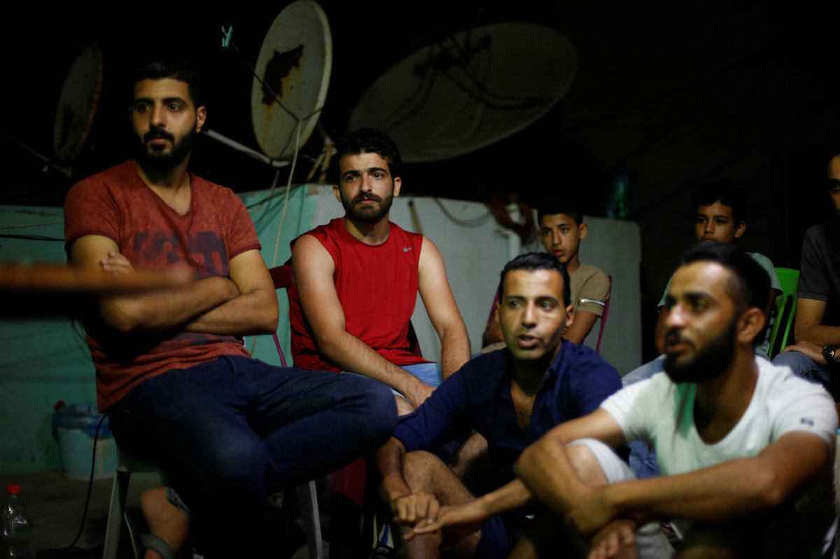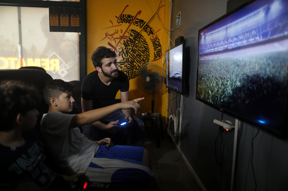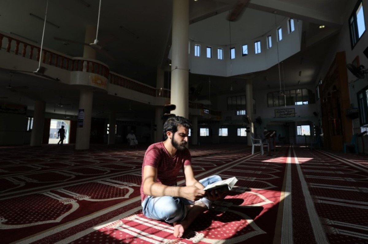 Palestinian rapper Ibrahim Ghunaim (MC Gaza) is filmed as he performs in front of destroyed buildings in Gaza City, August 18, 2017. REUTERS/Mohammed Salem Palestinian rapper Ibrahim Ghunaim (MC Gaza) teaches children about rap, in Gaza City, August 17, 2017. REUTERS/Mohammed Salem Palestinian rapper Ibrahim Ghunaim (MC Gaza) practices his songs inside a damaged building in Gaza City, August 18, 2017. REUTERS/Mohammed Salem Palestinian rapper Ibrahim Ghunaim (MC Gaza) prays in a mosque in Gaza City, August 24, 2017. REUTERS/Mohammed Salem Palestinian rapper Ibrahim Ghunaim (MC Gaza) looks on as a child gestures, at his video game shop in Gaza City, August 16, 2017. REUTERS/Mohammed Salem Palestinian rapper Ibrahim Ghunaim (MC Gaza) stands on the balcony of his house, with a mural depicting late Palestinian leader Yasser Arafat, shown in the background on a wall in Gaza City, August 16, 2017. REUTERS/Mohammed Salem Palestinian rapper Ibrahim Ghunaim (MC Gaza) kisses his mother, as his brother who has Down syndrome looks on, at their family home in Gaza City, August 16, 2017. REUTERS/Mohammed Salem Palestinian rapper Ibrahim Ghunaim (MC Gaza) practices his songs in his room, at home in Gaza City, August 15, 2017. REUTERS/Mohammed Salem Palestinian rapper Ibrahim Ghunaim (MC Gaza) cooks with his mother at their home in Gaza City, August 16, 2017. REUTERS/Mohammed Salem Palestinian rapper Ibrahim Ghunaim (MC Gaza) (L) performs with a friend on a beach in Gaza City, August 16, 2017. REUTERS/Mohammed Salem People celebrate during a wedding party in Gaza City, August 22, 2017. REUTERS/Mohammed Salem Palestinian rapper Ibrahim Ghunaim (MC Gaza) performs at the seaport of Gaza City, August 15, 2017. REUTERS/Mohammed Salem Palestinian rapper Ibrahim Ghunaim (MC Gaza) (2nd L) watches a soccer match with his friends on a rooftop in Gaza City, August 16, 2017. REUTERS/Mohammed Salem