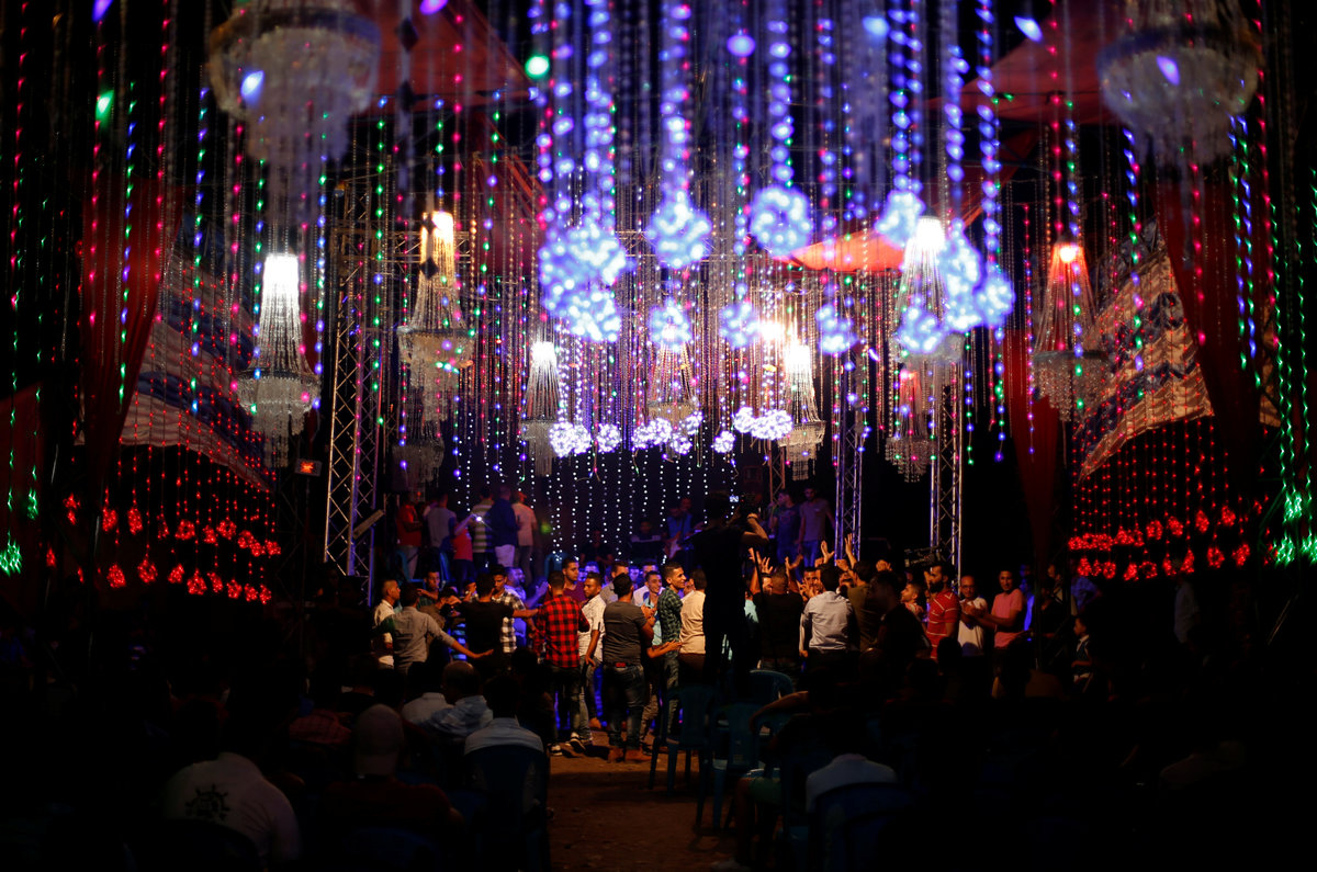 Palestinian rapper Ibrahim Ghunaim (MC Gaza) performs during a wedding party in Gaza City, August 22, 2017. REUTERS/Mohammed Salem