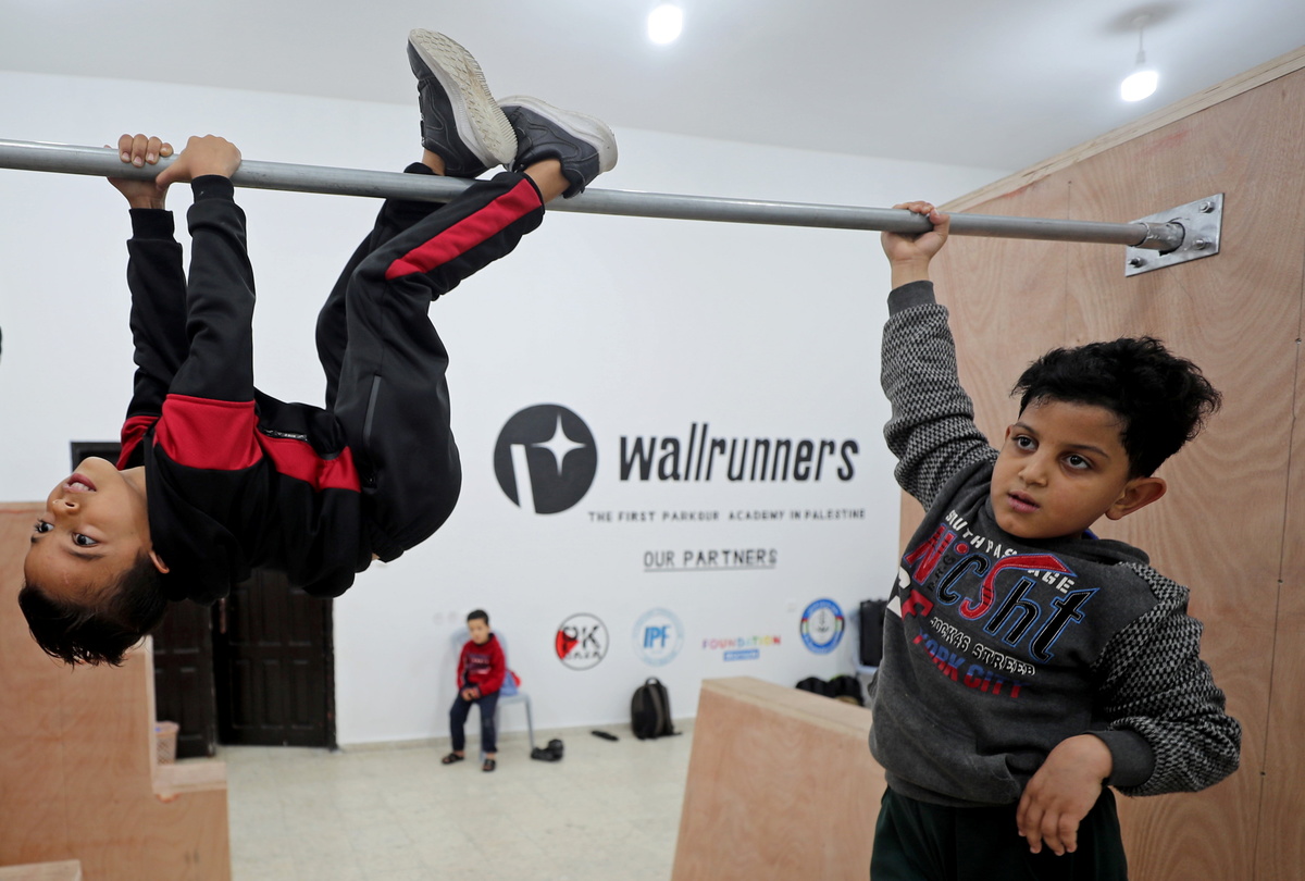 The Palestinian territory's first parkour gym - equipped with wooden boxes over which youngsters can soar in twists and flips, and padded mattresses to land on - has opened its doors.