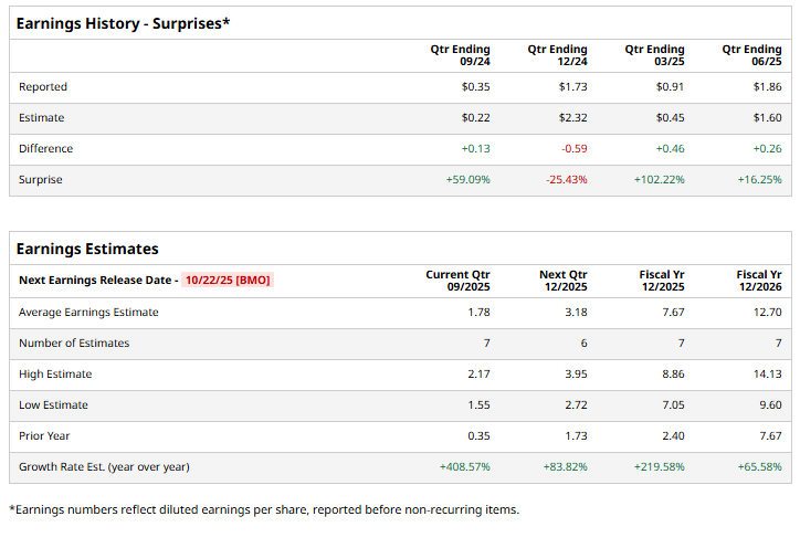 While GE Vernova’s revenue is expected to show steady year-over-year growth, analysts are optimistic about its earnings trajectory. Wall Street forecasts earnings of $1.78 per share for the third quarter, an impressive jump from $0.35 in the same period last year. Notably, GEV has beaten Wall Street’s earnings estimates in three out of the previous four quarters, including a 16.3% earnings surprise in the second quarter.