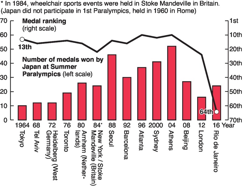 Seiichi Sakurai, vice president of the JPC, expects Japan will move past its failure to win a single gold medal at the Rio Paralympics. "There are more and more people in the Paralympic world who have the level of talent that we're looking for," he said. "The structure needed for Japan to perform at a high level on the world stage is being created, albeit little by little."