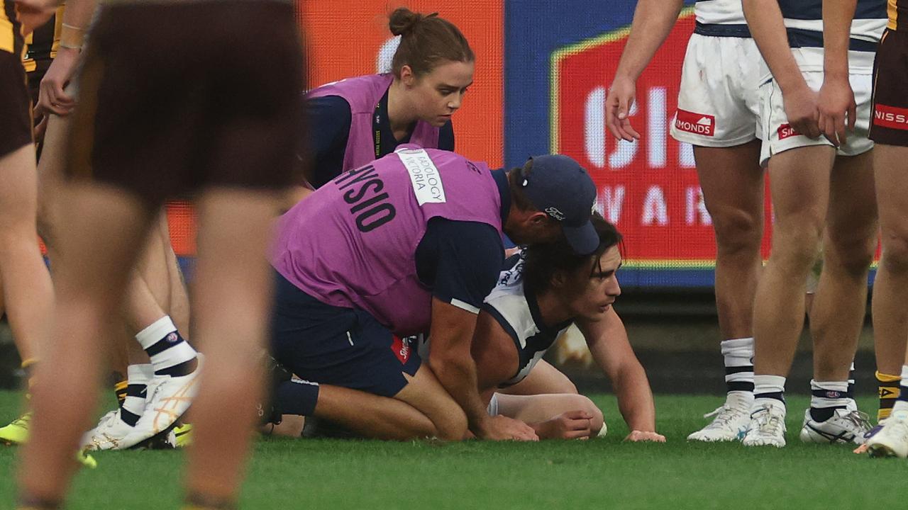 Hawthorn midfielder Conor Nash is facing a hefty suspension after striking Gryan Miers, leaving the Geelong dynamo staggering from the field in the third term.