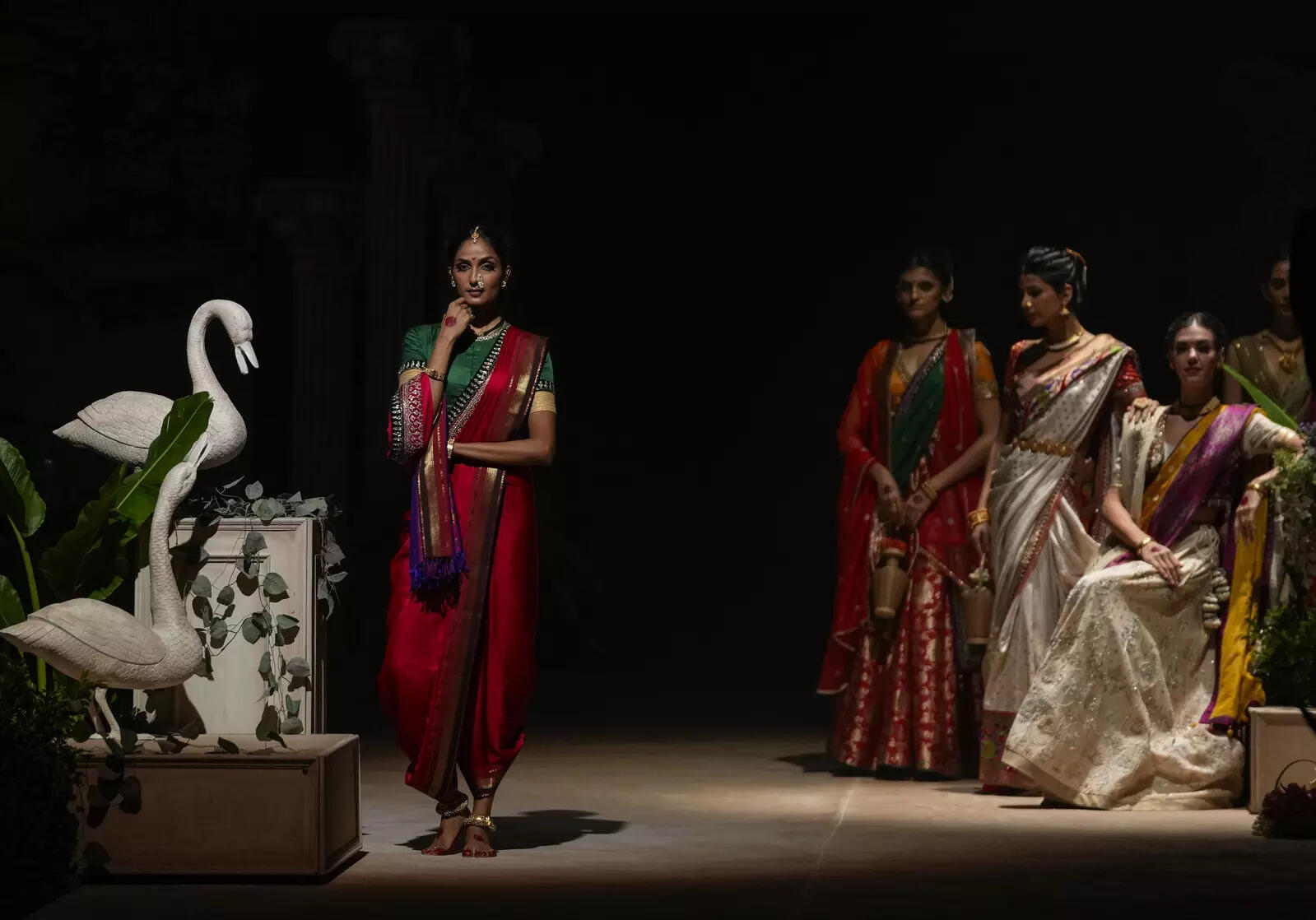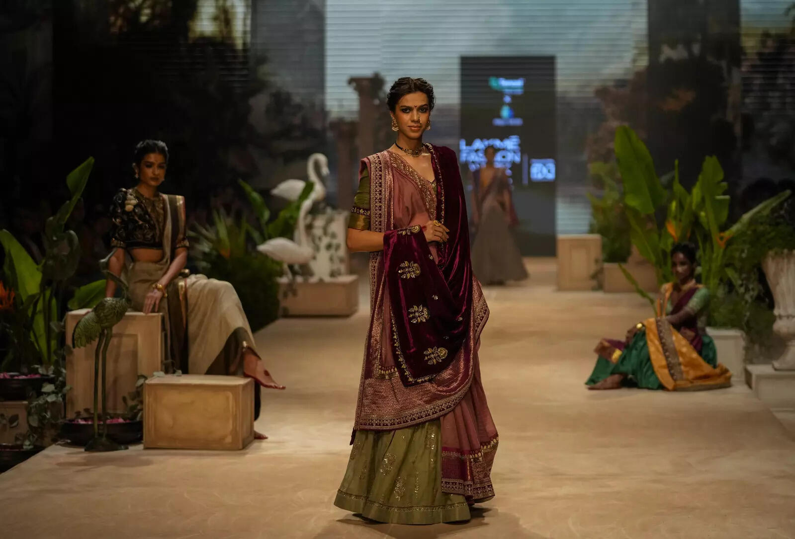 Tencel is a known and well-respected brand for textiles and it's been considered to be the best option for all the mainstream designers to rely on. Their production values are authentic and very much within the respect of environmental sensitivities. Tencel has been in collaboration with Anita Dongre for Grassroots, her other line of ready-to-wear and last year they launched their ready-to-wear line with Manish Malhotra as well. This year they are accelerating with much-celebrated designer Anju Modi for her beautiful collection called Damayanti. It was inspired by the paintings of an Indian artist Raja Ravi Varma, who is considered among the greatest painters in the history of Indian art. His works are one of the best illustrations of the fusion of European academic art with an immaculate Indian sensibility and iconography. Anju Modi’s interpretation of his vision converted paintings into real female characters portraying Damayanti. Models walking bare feet with golden intricately designed payals with soles coloured in Heena takes us back into an era of olden classic magnificence resembling wealth, prosperity and culture. Saris, cholis and jackets with drapes on one side and matching shawls on the other shoulder instantly created an aura of upper Indian class women with their most precious pure gold jewels. Her silhouettes were traditional mainly a combination of beautiful saris of 9 yards which can be worn in a style of dhotis, flared skirts with short tube blouses covered with crop jackets and double shawls on both shoulders with traditional embroidery of gold and copper with floral and leafy motifs of resham threadwork. Most definitely worth investing in for decades to cherish, wear, repeat and pass it on to your daughters for generations to preserve. Anju’s collection was a perfect interpretation of classical art and the geniuses of historic artwork. It's refreshing to see creations being timeless and authentic with organic fabrics being explored.