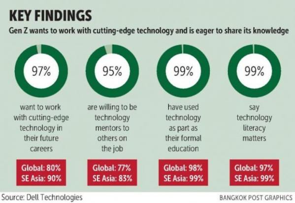 A full 97% of Thailand's Generation Z, aged 16-23, are eager to work with cutting-edge technology in future careers, higher than the global and Southeast Asian averages, according to a survey by Dell Technologies.