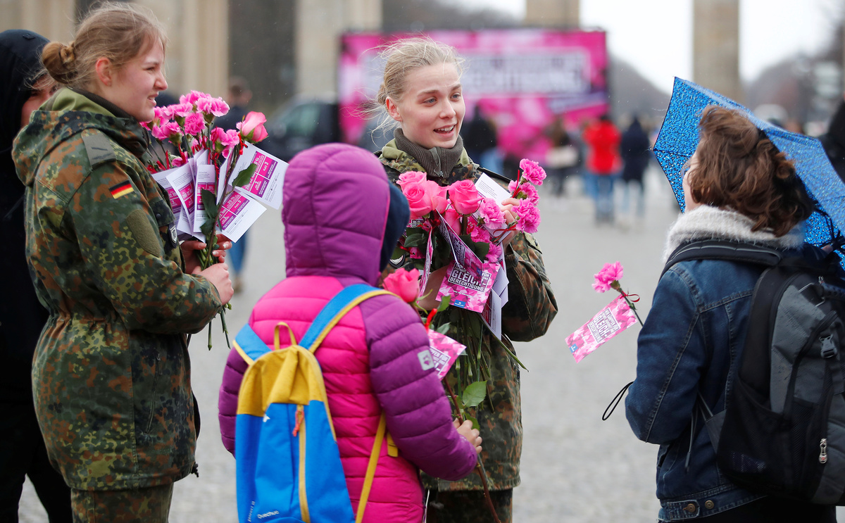 In Berlin, city authorities declared Women's Day a formal holiday and thousands joined a colourful demonstration under sunny skies at the city's Alexanderplatz.