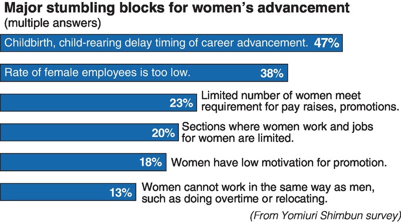 According to the Yomiuri Shimbun survey, the rate of women in management positions, which makes them candidates for board members, was 9.9% on average.