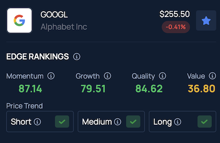 Benzinga's Edge Stock Rankings indicate that GOOGL demonstrates a robust trend over short, medium and long-term timeframes, with a complete performance breakdown available here.