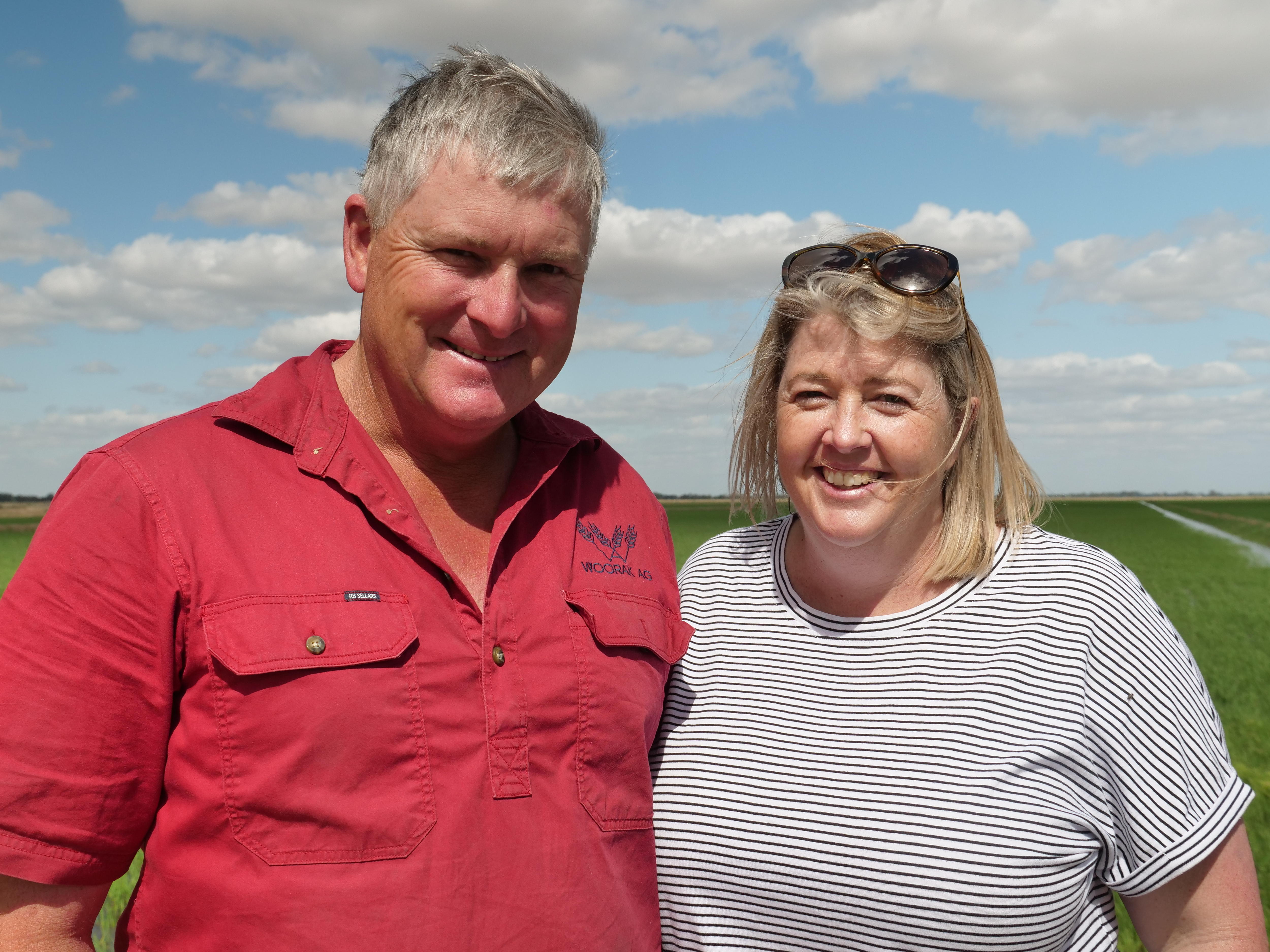 Brooke and Neville Hollins grow rice at Burraboi, about 200 kilometres south of Mr Knagge's farm.