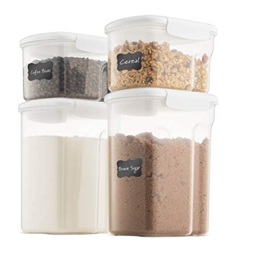 Airtight Food-Storage Containers With Lids BPA-Free Plastic Kitchen Pantry Storage Containers - Dry-Food-Storage Containers Set For Flour, Cereal, Sugar, Coffee, Rice, Nuts, Snacks Etc. (White)