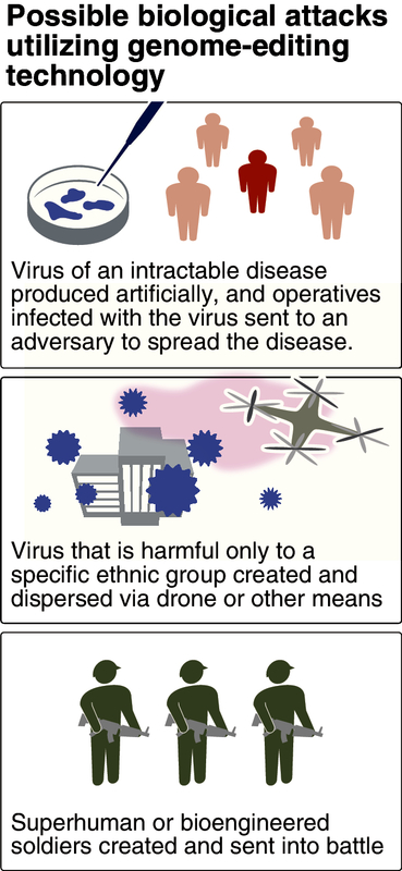 According to Shinomiya, there is a prevailing view among experts that it might be possible to produce a genome-editing virus and launch an attack that would modify the genetic sequence of people in a particular ethnic group.