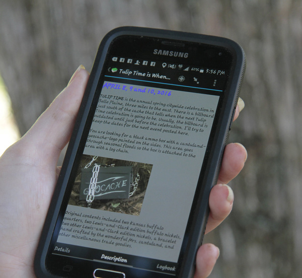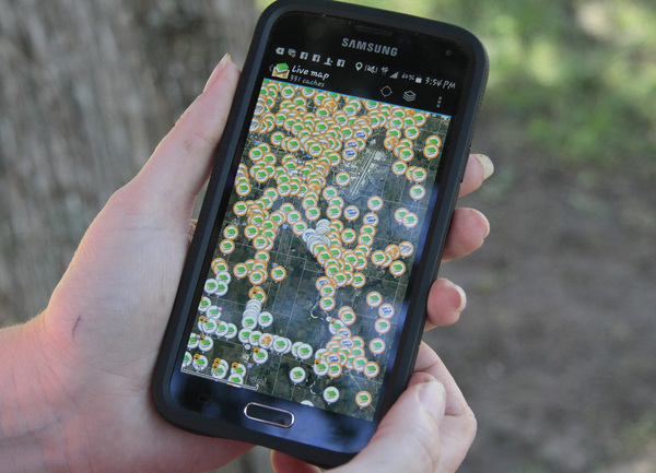 Hopeful geocachers can enter a location, and a map will show nearby caches. Once a person picks a particular cache to hunt for, they follow arrows, directions and clues to find it. All caches contain a logbook for finders to sign, and some have trinkets or other small treasures.