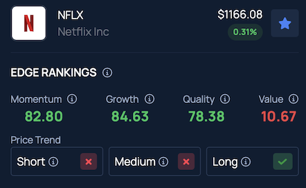 Benzinga's Edge Stock Rankings rank Netflix's growth in the 84th percentile, highlighting its performance relative to top industry peers, such as Disney and Paramount.