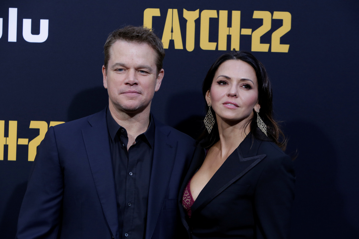 Matt Damon and his wife Luciana Barroso arrive at the premiere of "Catch 22", a limited series produced by George Clooney based on the book by author Joseph Heller, in Los Angeles, California, U.S., May 7, 2019. REUTERS/Monica Almeida