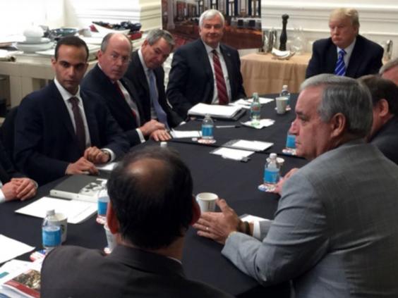 Mr Trump has previously referred to Mr Papadopoulos as an “excellent guy”. In March, he posted a picture on Instagram with the caption “meeting with my national security team” in which the now-disgraced aide can be seen sitting four seats to his right.