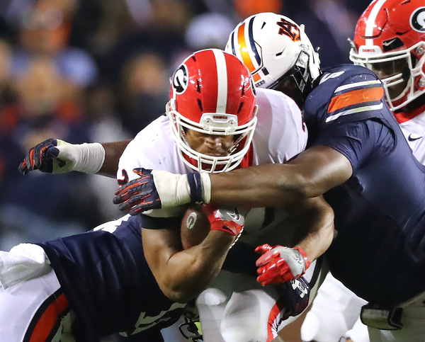 Two minutes into the second quarter, Davin Bellamy's sack-and-strip of quarterback Jarrett Stidham thwarted an Auburn drive that had reached the Georgia 14 and gave the Bulldogs' offense a chance to turn the tide. They did, driving 84 yards in seven plays to score on Fromm's TD pass to Isaac Nauta.