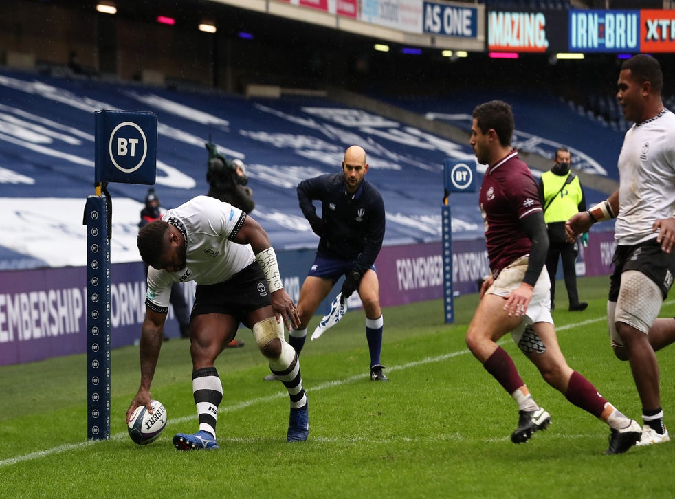 Josua Tuisova grabbed Fiji's third score of the afternoon not long after before Georgia did produce a response when Giorgi Melikidze barged over the line and Tedo Abzhandadze's trusty boot ensured the difference was only nine at the break.