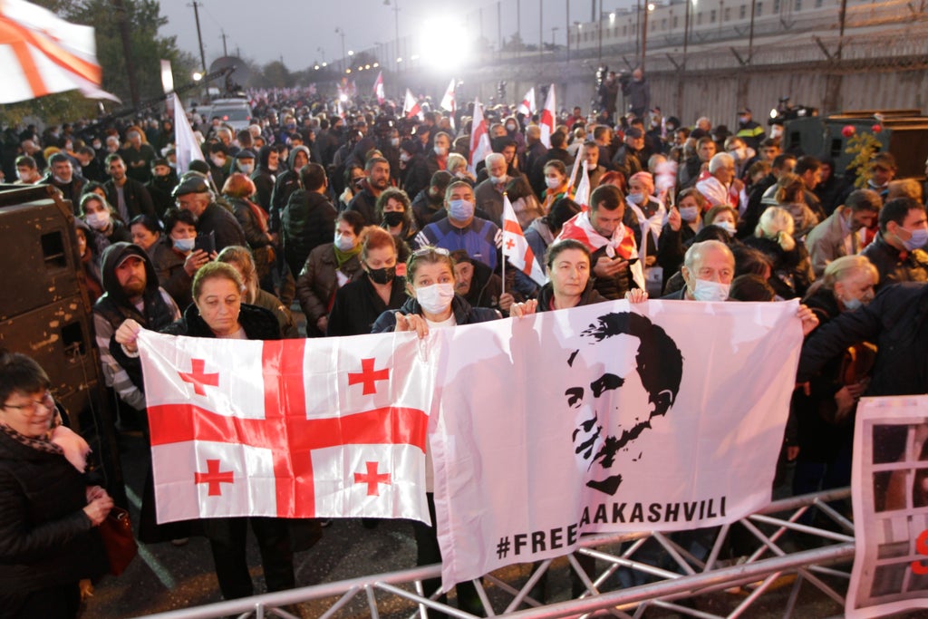 Hundreds of protesters are rallying outside a prison in Georgia to demand that the country’s incarcerated former President Mikheil Saakashvili be transferred to a private clinic because he is weakening while on a hunger strike.