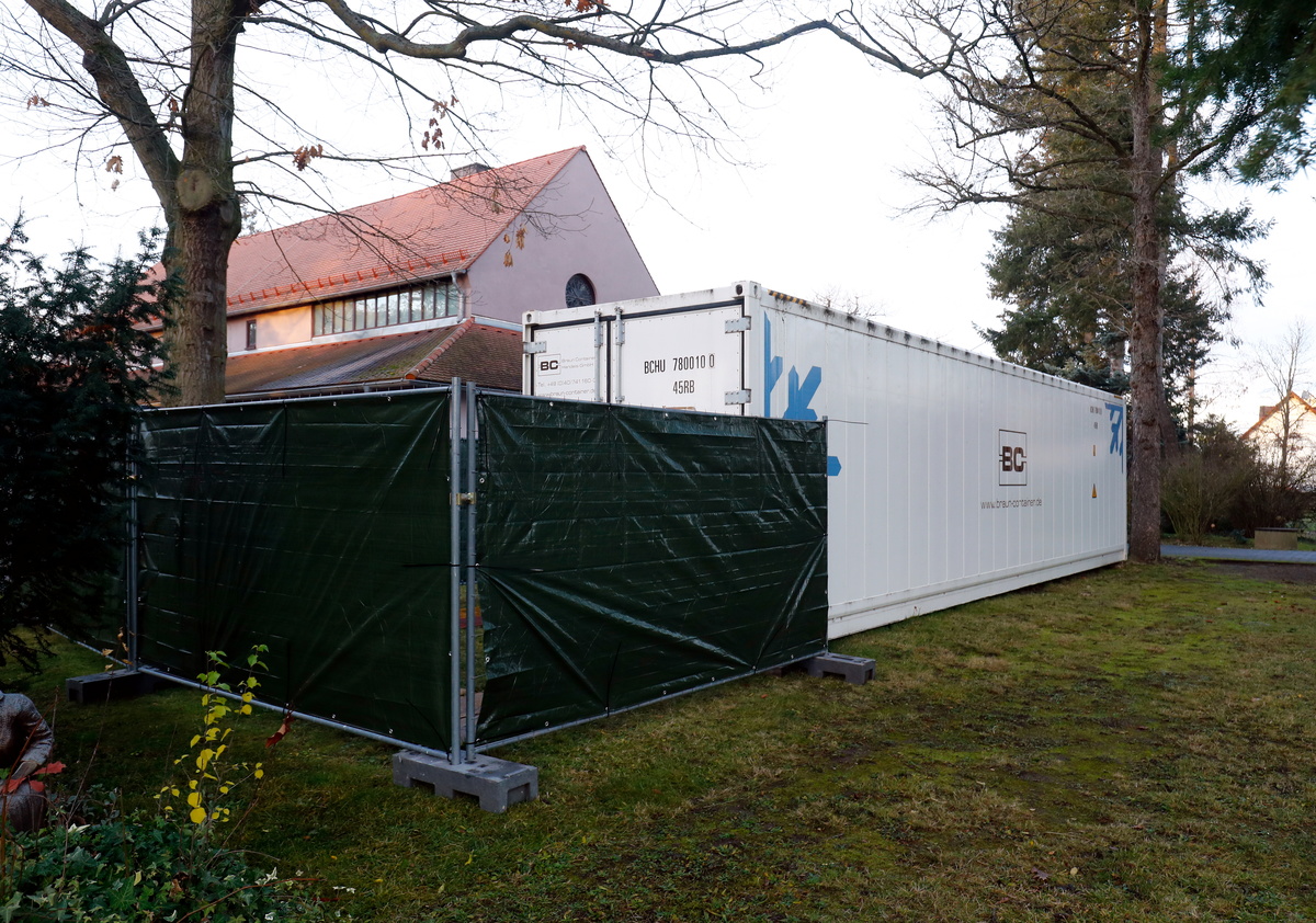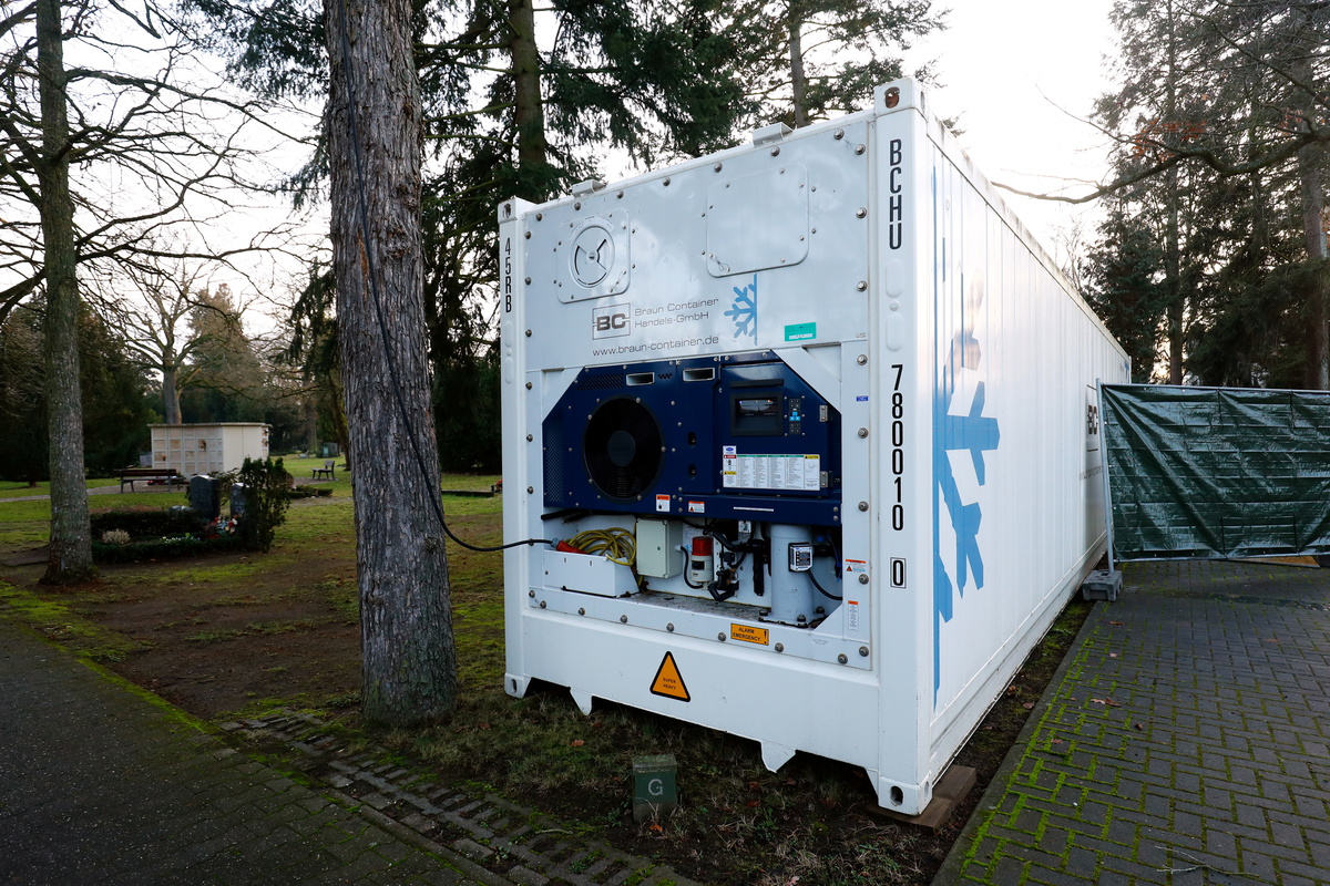 A cemetery in the German city of Hanau has started to temporarily store the bodies of people who have died from COVID-19 in a metal shipping container because hospital mortuaries are already full.