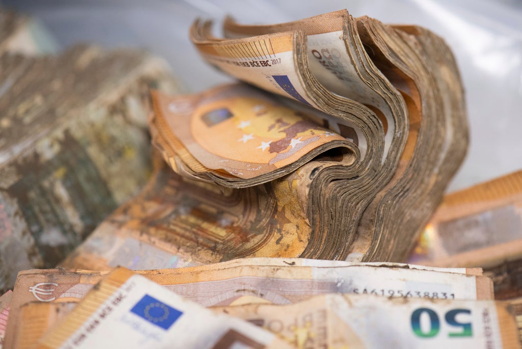 The Bundesbank said Wednesday that individuals and banks have handed in notes that were soaked in the floods and often also contaminated with oil, sewage or mud. The damaged money is dried, processed and then destroyed at a center in Mainz that analyzes forged and damaged money, and its owners are refunded without charge.