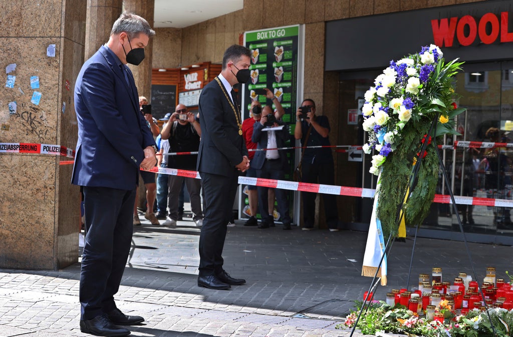 Flowers were piled up Sunday outside the nearby store where the attack started. Bavaria's governor, Markus Soeder laid a wreath and described the attack as “simply incomprehensible, appalling, senseless.”
