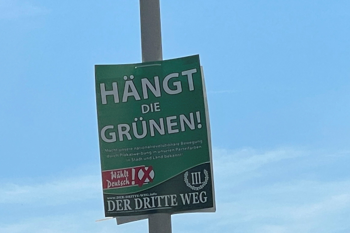 A German court ordered on Tuesday the removal of election posters saying "Hang The Greens" placed by a far-right party with suspected links to neo-Nazi groups.