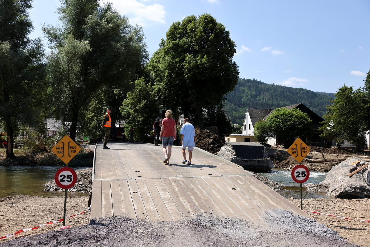 Nearly a week later, the German military has set up temporary bridges across the Ahr river that runs though the centre of the village.