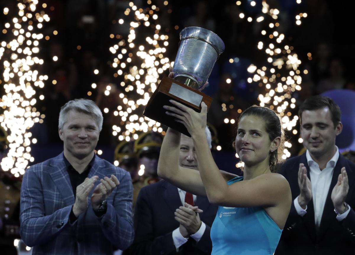 Tennis - Kremlin Cup - Women's singles - Final - Moscow, Russia - October 21, 2017 Julia Goerges of Germany holds her trophy after defeating Daria Kasatkina of Russia. REUTERS/Tatyana Makeyeva