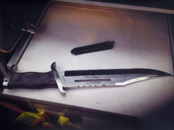 Photos taken by police showed the man’s weapons – a small flick knife and a large hunting knife.