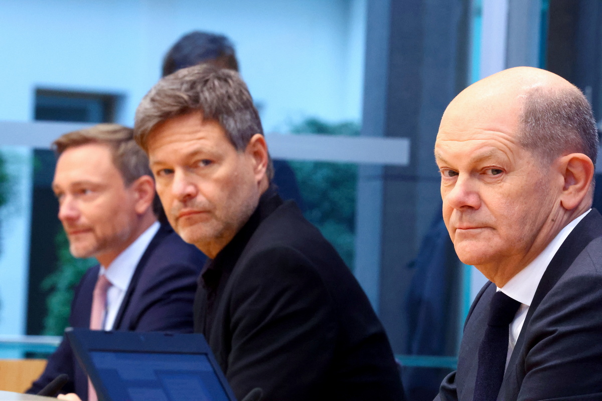 Designated German Chancellor Olaf Scholz, designated Finance Minister Christian Lindner and designated Economy and Climate Minister Robert Habeck attend a news conference after the signing ceremony of a coalition government agreement in Berlin, Germany, December 7, 2021. REUTERS/Fabrizio Bensch