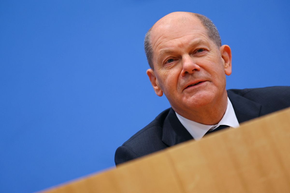 Designated German Chancellor Olaf Scholz speaks during a news conference after the signing ceremony of a coalition government agreement in Berlin, Germany, December 7, 2021. REUTERS/Fabrizio Bensch