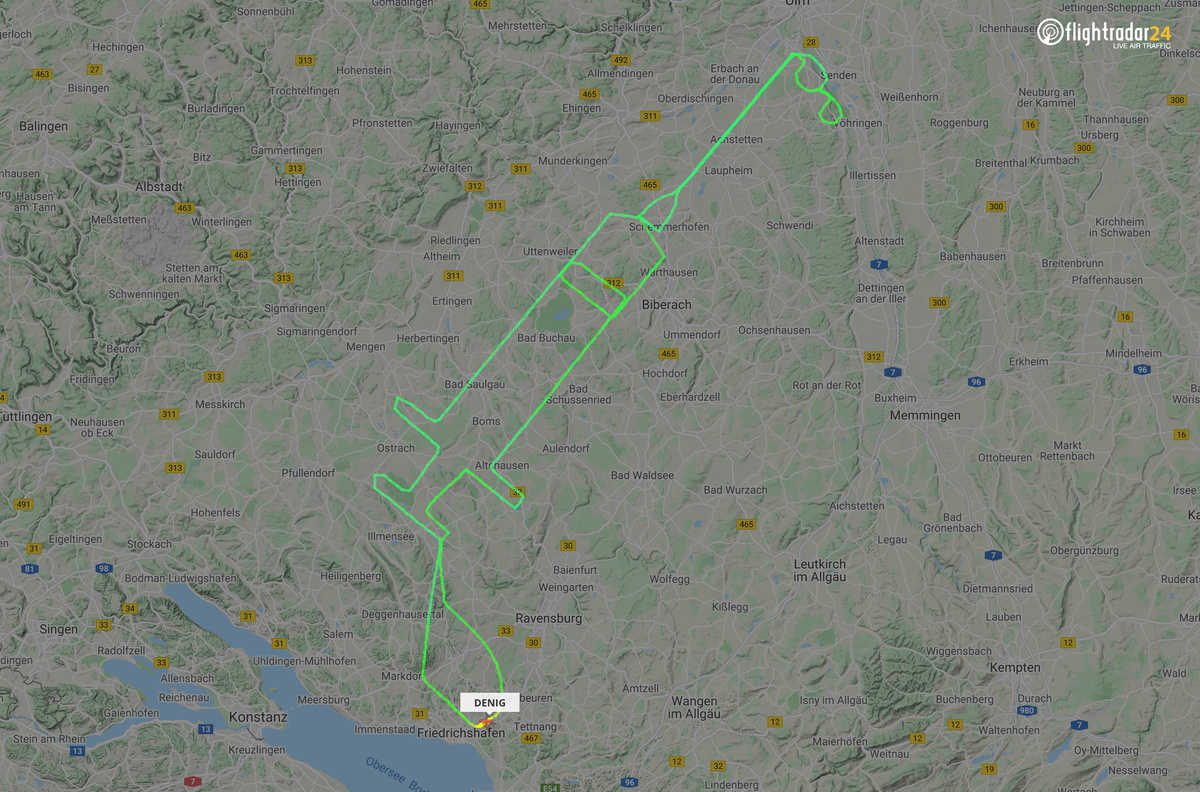 The 20-year-old pilot mapped out the route he would need to take on a GPS device before taking to the skies near Lake Constance in southern Germany. The syringe-shaped route showed up on internet site flightradar24.