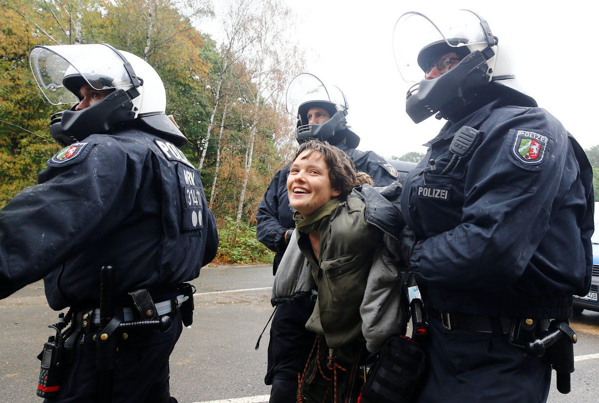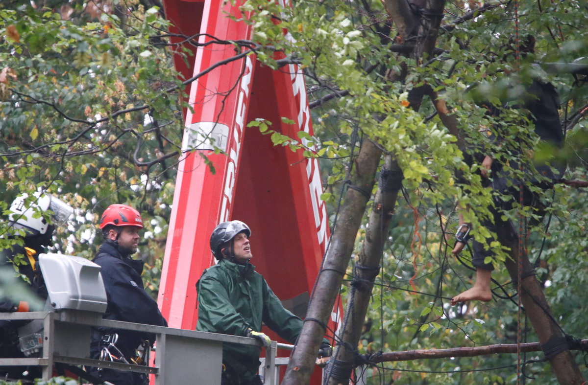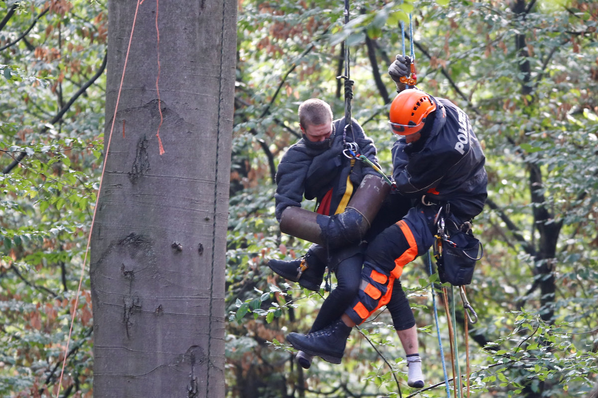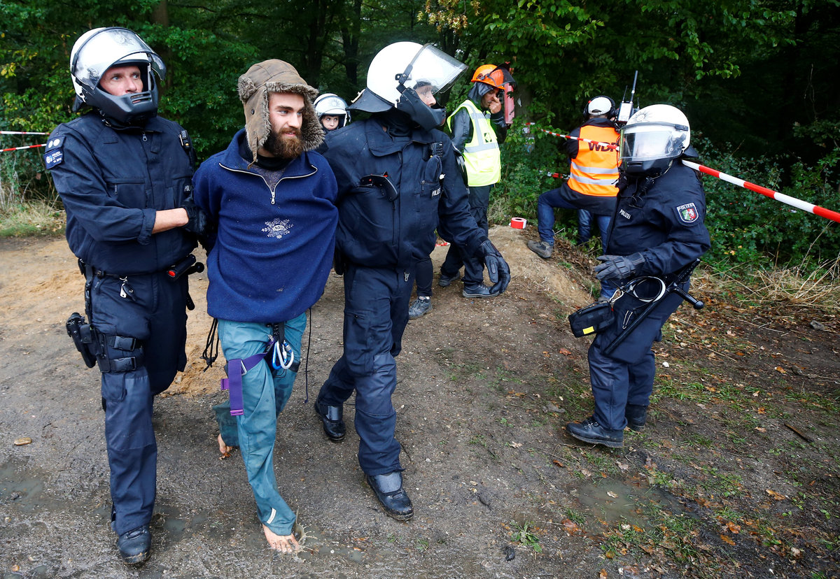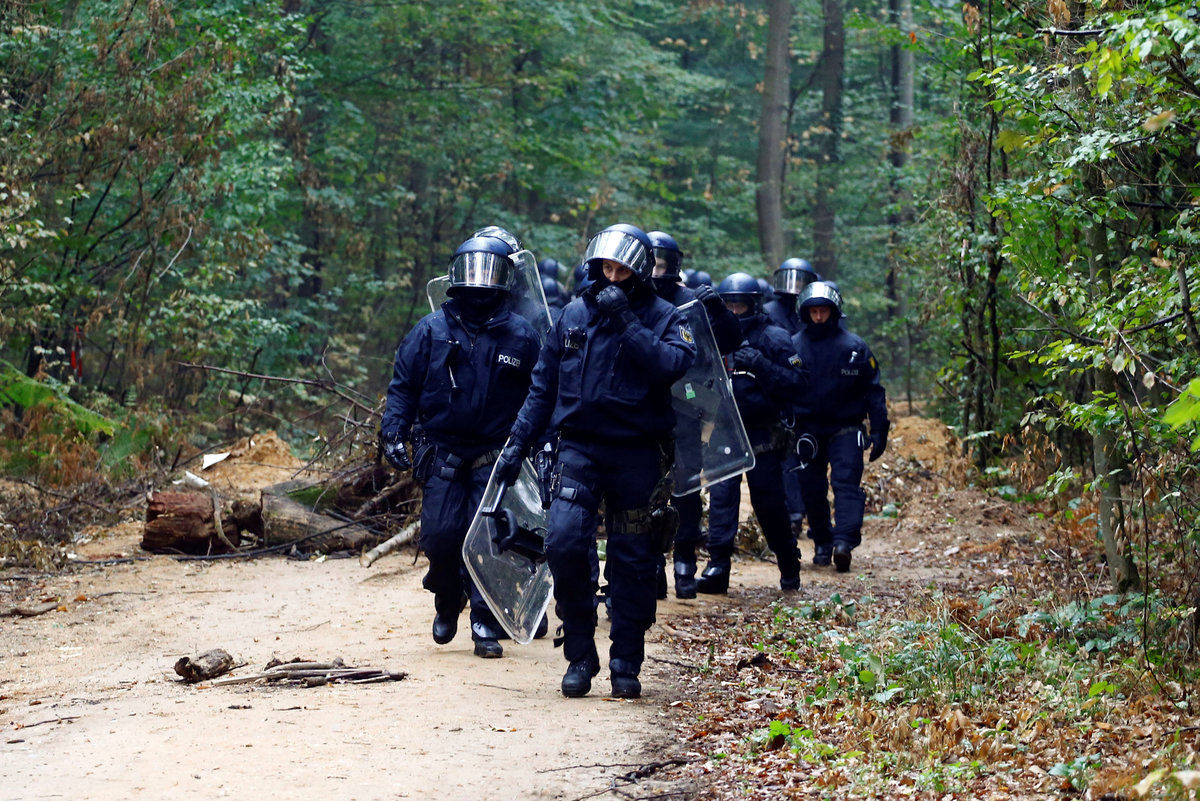 Activists are seen at the treehouse, as policemen try to clear the area at the "Hambacher Forst" in Kerpen-Buir near Cologne, Germany, September 13, 2018, where protesters have built a camp with tents and treehouses to stop the clearing of the Hambach forest for a nearby open cast coal mining. REUTERS/Wolfgang RattayPolice officers detain an activist as they attempt to clear the area at the "Hambacher Forst" in Kerpen-Buir near Cologne, Germany, September 13, 2018, where protesters have built a camp with tents and treehouses to stop the clearing of the Hambach forest for a nearby open cast coal mining. REUTERS/Wolfgang RattayPolicemen detain an activist as they attempt to clear the area at the "Hambacher Forst" in Kerpen-Buir near Cologne, Germany, September 13, 2018, where protesters have built a camp with tents and treehouses to stop the clearing of the Hambach forest for a nearby open cast coal mining. REUTERS/Wolfgang RattayPolicemen detain an activist as they attempt to clear the area at the "Hambacher Forst" in Kerpen-Buir near Cologne, Germany, September 13, 2018, where protesters have built a camp with tents and treehouses to stop the clearing of the Hambach forest for a nearby open cast coal mining. REUTERS/Wolfgang RattayPolice cordons off the zone as they prepare to clear the area at the "Hambacher Forst" in Kerpen-Buir near Cologne, Germany, September 13, 2018, where protesters have built a camp with tents and treehouses to stop the clearing of the Hambach forest for a nearby open cast coal mining. REUTERS/Wolfgang RattayPolicemen detain an activist as they attempt to clear the area at the "Hambacher Forst" in Kerpen-Buir near Cologne, Germany, September 13, 2018, where protesters have built a camp with tents and treehouses to stop the clearing of the Hambach forest for a nearby open cast coal mining. REUTERS/Wolfgang RattayA police officer carries the pipe system activists use to lock themselves as police attempt to clear the area at the "Hambacher Forst" in Kerpen-Buir near Cologne, Germany, September 13, 2018, where protesters have built a camp with tents and treehouses to stop the clearing of the Hambach forest for a nearby open cast coal mining. REUTERS/Wolfgang RattayA policeman detains an activist as police attempt to clear the area at the "Hambacher Forst" in Kerpen-Buir near Cologne, Germany, September 13, 2018, where protesters have built a camp with tents and treehouses to stop the clearing of the Hambach forest for a nearby open cast coal mining. REUTERS/Wolfgang RattayPolice officers detain an activist as they attempt to clear the area at the "Hambacher Forst" in Kerpen-Buir near Cologne, Germany, September 13, 2018, where protesters have built a camp with tents and treehouses to stop the clearing of the Hambach forest for a nearby open cast coal mining. REUTERS/Thilo SchmuelgenPolice officers detain an activist as they attempt to clear the area at the "Hambacher Forst" in Kerpen-Buir near Cologne, Germany, September 13, 2018, where protesters have built a camp with tents and treehouses to stop the clearing of the Hambach forest for a nearby open cast coal mining. REUTERS/Thilo SchmuelgenPolicemen detain an activist as they attempt to clear the area at the "Hambacher Forst" in Kerpen-Buir near Cologne, Germany, September 13, 2018, where protesters have built a camp with tents and treehouses to stop the clearing of the Hambach forest for a nearby open cast coal mining. REUTERS/Wolfgang RattayPolice armoured vehicles and a water cannon are seen at the site as police prepares to clear the area at the "Hambacher Forst" in Kerpen-Buir near Cologne, Germany, September 13, 2018, where protesters have built a camp with tents and treehouses to stop the clearing of the Hambach forest for a nearby open cast coal mining. REUTERS/Wolfgang RattayPolicemen arrest an activist as they attempt to clear the area at the "Hambacher Forst" in Kerpen-Buir near Cologne, Germany, September 13, 2018, where protesters have built a camp with tents and treehouses to stop the clearing of the Hambach forest for a nearby open cast coal mining. REUTERS/Wolfgang RattayAn activist sits in a tree as police attempt to clear the area at the "Hambacher Forst" in Kerpen-Buir near Cologne, Germany, September 13, 2018, where protesters have built a camp with tents and treehouses to stop the clearing of the Hambach forest for a nearby open cast coal mining. REUTERS/Thilo SchmuelgenPolicemen arrest an activist as they attempt to clear the area at the "Hambacher Forst" in Kerpen-Buir near Cologne, Germany, September 13, 2018, where protesters have built a camp with tents and treehouses to stop the clearing of the Hambach forest for a nearby open cast coal mining. REUTERS/Wolfgang RattayAn activist juggles the balls at the treehouse, as police forces prepare to clear the area at the "Hambacher Forst" in Kerpen-Buir near Cologne, Germany, September 13, 2018, where protesters have built a camp with tents and treehouses to stop the clearing of the Hambach forest for a nearby open cast coal mining. REUTERS/Wolfgang RattayPolice officers make a selfie as they prepare to clear the area at the "Hambacher Forst" in Kerpen-Buir near Cologne, Germany, September 13, 2018, where protesters have built a camp with tents and treehouses to stop the clearing of the Hambach forest for a nearby open cast coal mining. REUTERS/Wolfgang RattayAn activist runs through the forest as police prepares to clear the area at the "Hambacher Forst" in Kerpen-Buir near Cologne, Germany, September 13, 2018, where protesters have built a camp with tents and treehouses to stop the clearing of the Hambach forest for a nearby open cast coal mining. REUTERS/Wolfgang RattayPolicemen in the crane lift approach an activist at the treehouse, as they attempt to clear the area at the "Hambacher Forst" in Kerpen-Buir near Cologne, Germany, September 13, 2018, where protesters have built a camp with tents and treehouses to stop the clearing of the Hambac