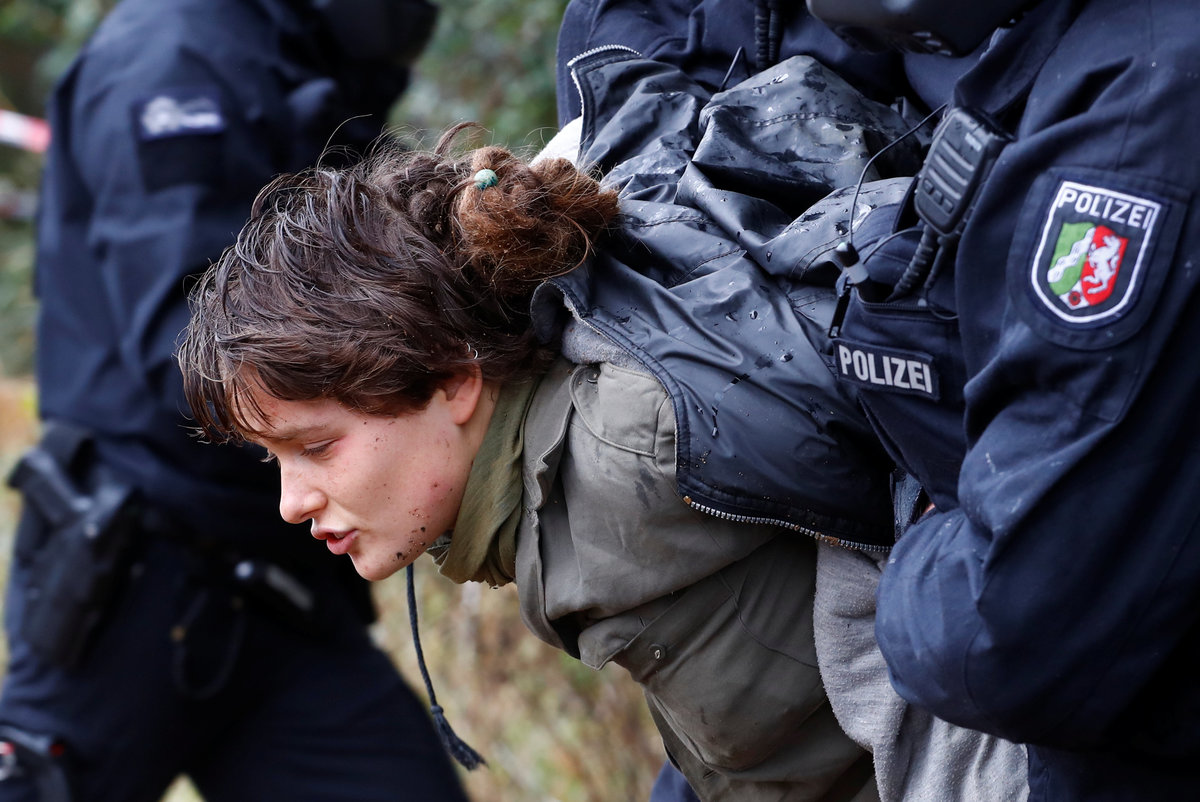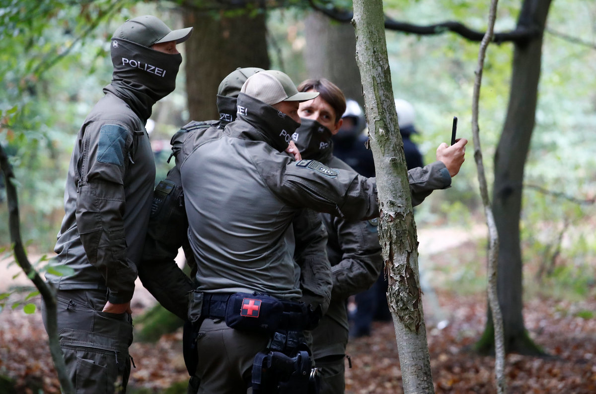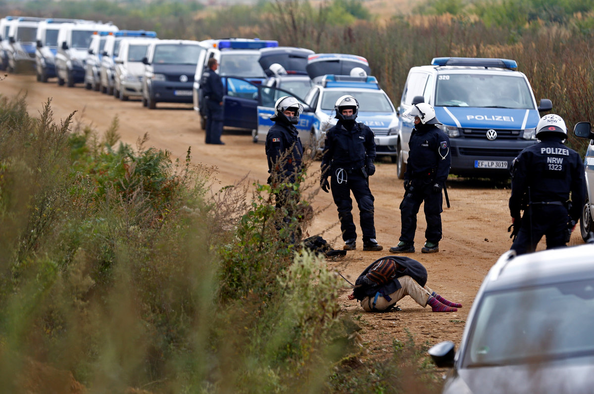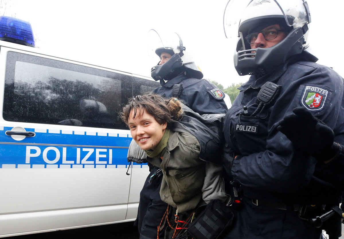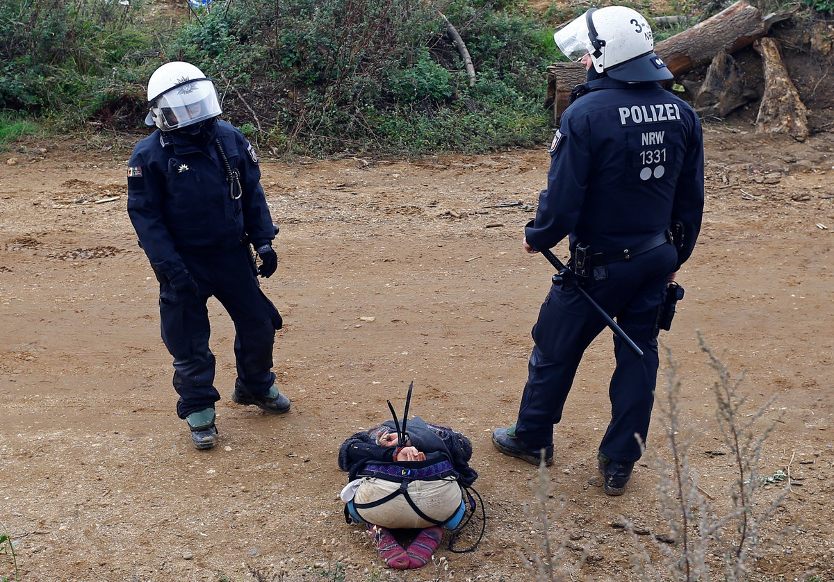 Activists are seen at the treehouse, as policemen try to clear the area at the "Hambacher Forst" in Kerpen-Buir near Cologne, Germany, September 13, 2018, where protesters have built a camp with tents and treehouses to stop the clearing of the Hambach forest for a nearby open cast coal mining. REUTERS/Wolfgang RattayPolice officers detain an activist as they attempt to clear the area at the "Hambacher Forst" in Kerpen-Buir near Cologne, Germany, September 13, 2018, where protesters have built a camp with tents and treehouses to stop the clearing of the Hambach forest for a nearby open cast coal mining. REUTERS/Wolfgang RattayPolicemen detain an activist as they attempt to clear the area at the "Hambacher Forst" in Kerpen-Buir near Cologne, Germany, September 13, 2018, where protesters have built a camp with tents and treehouses to stop the clearing of the Hambach forest for a nearby open cast coal mining. REUTERS/Wolfgang RattayPolicemen detain an activist as they attempt to clear the area at the "Hambacher Forst" in Kerpen-Buir near Cologne, Germany, September 13, 2018, where protesters have built a camp with tents and treehouses to stop the clearing of the Hambach forest for a nearby open cast coal mining. REUTERS/Wolfgang RattayPolice cordons off the zone as they prepare to clear the area at the "Hambacher Forst" in Kerpen-Buir near Cologne, Germany, September 13, 2018, where protesters have built a camp with tents and treehouses to stop the clearing of the Hambach forest for a nearby open cast coal mining. REUTERS/Wolfgang RattayPolicemen detain an activist as they attempt to clear the area at the "Hambacher Forst" in Kerpen-Buir near Cologne, Germany, September 13, 2018, where protesters have built a camp with tents and treehouses to stop the clearing of the Hambach forest for a nearby open cast coal mining. REUTERS/Wolfgang RattayA police officer carries the pipe system activists use to lock themselves as police attempt to clear the area at the "Hambacher Forst" in Kerpen-Buir near Cologne, Germany, September 13, 2018, where protesters have built a camp with tents and treehouses to stop the clearing of the Hambach forest for a nearby open cast coal mining. REUTERS/Wolfgang RattayA policeman detains an activist as police attempt to clear the area at the "Hambacher Forst" in Kerpen-Buir near Cologne, Germany, September 13, 2018, where protesters have built a camp with tents and treehouses to stop the clearing of the Hambach forest for a nearby open cast coal mining. REUTERS/Wolfgang RattayPolice officers detain an activist as they attempt to clear the area at the "Hambacher Forst" in Kerpen-Buir near Cologne, Germany, September 13, 2018, where protesters have built a camp with tents and treehouses to stop the clearing of the Hambach forest for a nearby open cast coal mining. REUTERS/Thilo SchmuelgenPolice officers detain an activist as they attempt to clear the area at the "Hambacher Forst" in Kerpen-Buir near Cologne, Germany, September 13, 2018, where protesters have built a camp with tents and treehouses to stop the clearing of the Hambach forest for a nearby open cast coal mining. REUTERS/Thilo SchmuelgenPolicemen detain an activist as they attempt to clear the area at the "Hambacher Forst" in Kerpen-Buir near Cologne, Germany, September 13, 2018, where protesters have built a camp with tents and treehouses to stop the clearing of the Hambach forest for a nearby open cast coal mining. REUTERS/Wolfgang RattayPolice armoured vehicles and a water cannon are seen at the site as police prepares to clear the area at the "Hambacher Forst" in Kerpen-Buir near Cologne, Germany, September 13, 2018, where protesters have built a camp with tents and treehouses to stop the clearing of the Hambach forest for a nearby open cast coal mining. REUTERS/Wolfgang RattayPolicemen arrest an activist as they attempt to clear the area at the "Hambacher Forst" in Kerpen-Buir near Cologne, Germany, September 13, 2018, where protesters have built a camp with tents and treehouses to stop the clearing of the Hambach forest for a nearby open cast coal mining. REUTERS/Wolfgang RattayAn activist sits in a tree as police attempt to clear the area at the "Hambacher Forst" in Kerpen-Buir near Cologne, Germany, September 13, 2018, where protesters have built a camp with tents and treehouses to stop the clearing of the Hambach forest for a nearby open cast coal mining. REUTERS/Thilo SchmuelgenPolicemen arrest an activist as they attempt to clear the area at the "Hambacher Forst" in Kerpen-Buir near Cologne, Germany, September 13, 2018, where protesters have built a camp with tents and treehouses to stop the clearing of the Hambach forest for a nearby open cast coal mining. REUTERS/Wolfgang RattayAn activist juggles the balls at the treehouse, as police forces prepare to clear the area at the "Hambacher Forst" in Kerpen-Buir near Cologne, Germany, September 13, 2018, where protesters have built a camp with tents and treehouses to stop the clearing of the Hambach forest for a nearby open cast coal mining. REUTERS/Wolfgang RattayPolice officers make a selfie as they prepare to clear the area at the "Hambacher Forst" in Kerpen-Buir near Cologne, Germany, September 13, 2018, where protesters have built a camp with tents and treehouses to stop the clearing of the Hambach forest for a nearby open cast coal mining. REUTERS/Wolfgang RattayAn activist runs through the forest as police prepares to clear the area at the "Hambacher Forst" in Kerpen-Buir near Cologne, Germany, September 13, 2018, where protesters have built a camp with tents and treehouses to stop the clearing of the Hambach forest for a nearby open cast coal mining. REUTERS/Wolfgang RattayPolicemen in the crane lift approach an activist at the treehouse, as they attempt to clear the area at the "Hambacher Forst" in Kerpen-Buir near Cologne, Germany, September 13, 2018, where protesters have built a camp with tents and treehouses to stop the clearing of the Hambac
