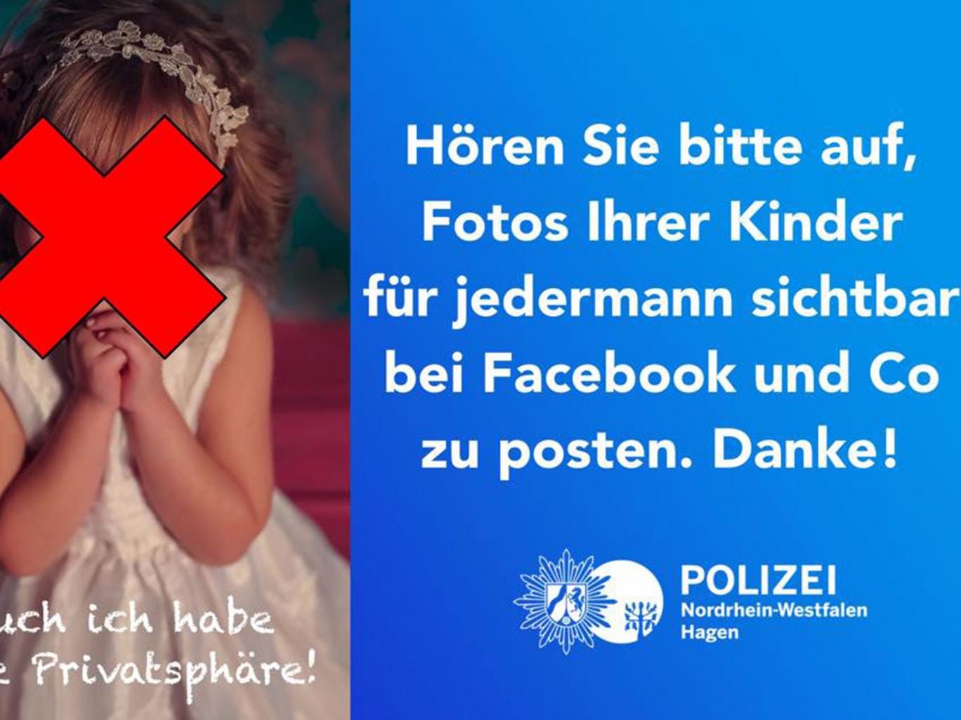 Hagen Police made a poster showing a young girl with her face obscured saying: “I have a right to privacy too!”