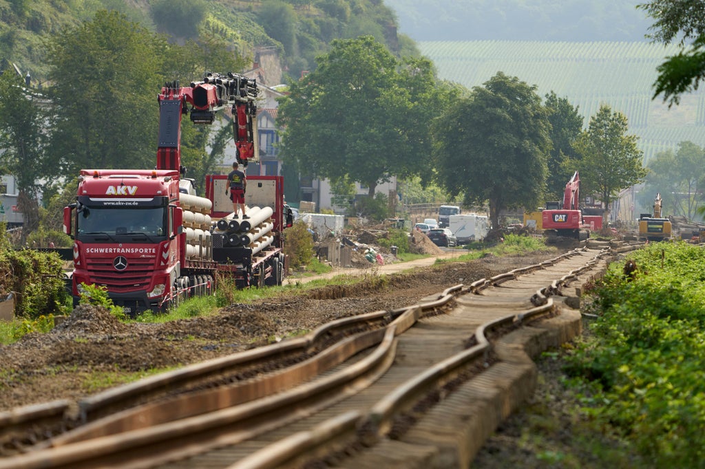 Railway operator Deutsche Bahn said that, starting Monday, two trains per hour are running each way between the valley's main town of Ahrweiler and Remagen, on the Rhine river. A further section will be reopened in December, but Deutsche Bahn said it will take much longer to reopen the line as far as its terminus further upstream at Ahrbrueck — a stretch on which eight bridges will have to be replaced.