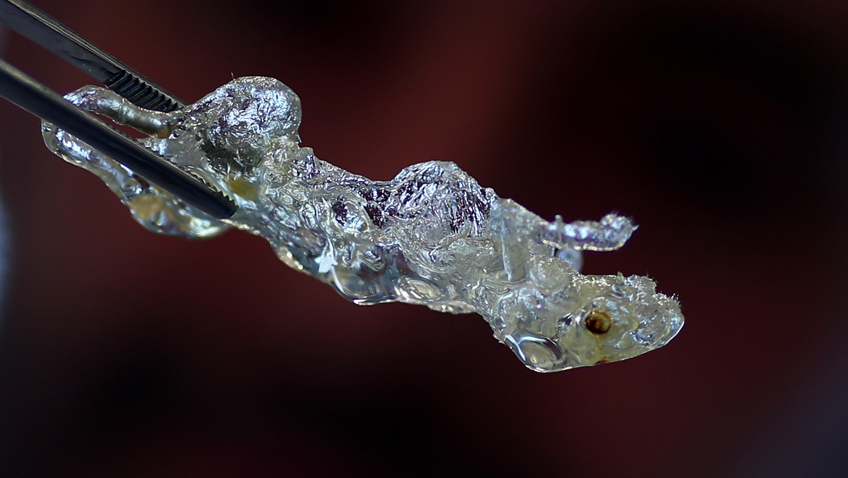 Dr. Ali Ertuerk, Group Leader at the Institute for Stroke and Dementia Research (ISD) at the Ludwig MaximillianÕs University, holds at a transparent mouse at his laboratory in Munich, Germany April 23, 2019. Mr. Ertuerk and his team developed DISCO transparency technology which is used by scientists from diverse biomedical research fields to generate high resolution views of intact rodent organs and bodies, a milestone on the way to generate 3D-bioprinted human organs. REUTERS/Michael Dalder