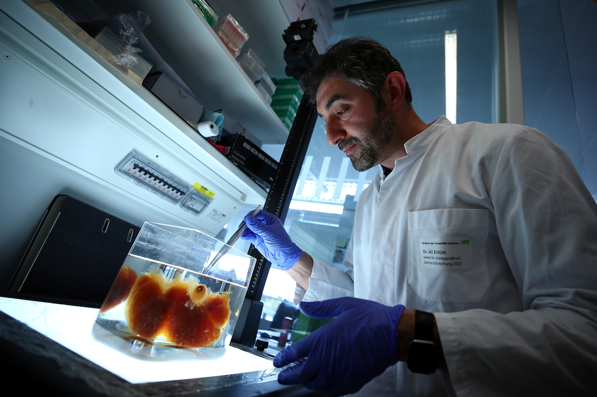 Dr. Ali Ertuerk, Group Leader at the Institute for Stroke and Dementia Research (ISD) at the Ludwig Maximillian's University, works at a laser microscope at his laboratory in Munich, Germany April 23, 2019. Mr. Ertuerk and his team developed DISCO transparency technology which is used by scientists from diverse biomedical research fields to generate high resolution views of intact rodent organs and bodies, a milestone on the way to generate 3D-bioprinted human organs. Picture taken April 23, 2019. REUTERS/Michael DalderDr. Ali Ertuerk, Group Leader at the Institute for Stroke and Dementia Research (ISD) at the Ludwig Maximillian's University, checks the 3D printing of a scaffold for a kidney at his laboratory in Munich, Germany April 23, 2019. Mr. Ertuerk and his team developed DISCO transparency technology which is used by scientists from diverse biomedical research fields to generate high resolution views of intact rodent organs and bodies, a milestone on the way to generate 3D-bioprinted human organs. Picture taken April 23, 2019. REUTERS/Michael DalderAn employee works with stem cells at Dr. Ali Ertuerk's laboratory in Munich, Germany April 23, 2019. Mr. Ertuerk and his team developed DISCO transparency technology which is used by scientists from diverse biomedical research fields to generate high resolution views of intact rodent organs and bodies, a milestone on the way to generate 3D-bioprinted human organs. Picture taken April 23, 2019. REUTERS/Michael DalderDr. Ali Ertuerk, Group Leader at the Institute for Stroke and Dementia Research (ISD) at the Ludwig Maximillian's University, works at a laser microscope at his laboratory in Munich, Germany April 23, 2019. Mr. Ertuerk and his team developed DISCO transparency technology which is used by scientists from diverse biomedical research fields to generate high resolution views of intact rodent organs and bodies, a milestone on the way to generate 3D-bioprinted human organs. Picture taken April 23, 2019. REUTERS/Michael DalderAn employee works with stem cells at Dr. Ali Ertuerk's laboratory in Munich, Germany April 23, 2019. Mr. Ertuerk and his team developed DISCO transparency technology which is used by scientists from diverse biomedical research fields to generate high resolution views of intact rodent organs and bodies, a milestone on the way to generate 3D-bioprinted human organs. REUTERS/Michael Dalder