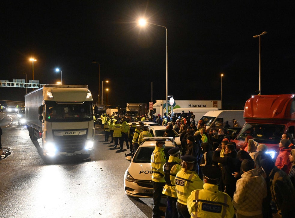 Protesting lorry drivers closed a road and clashed with police in Dover on Wednesday after tempers flared over the delays in crossing the Channel just two days before Christmas.
